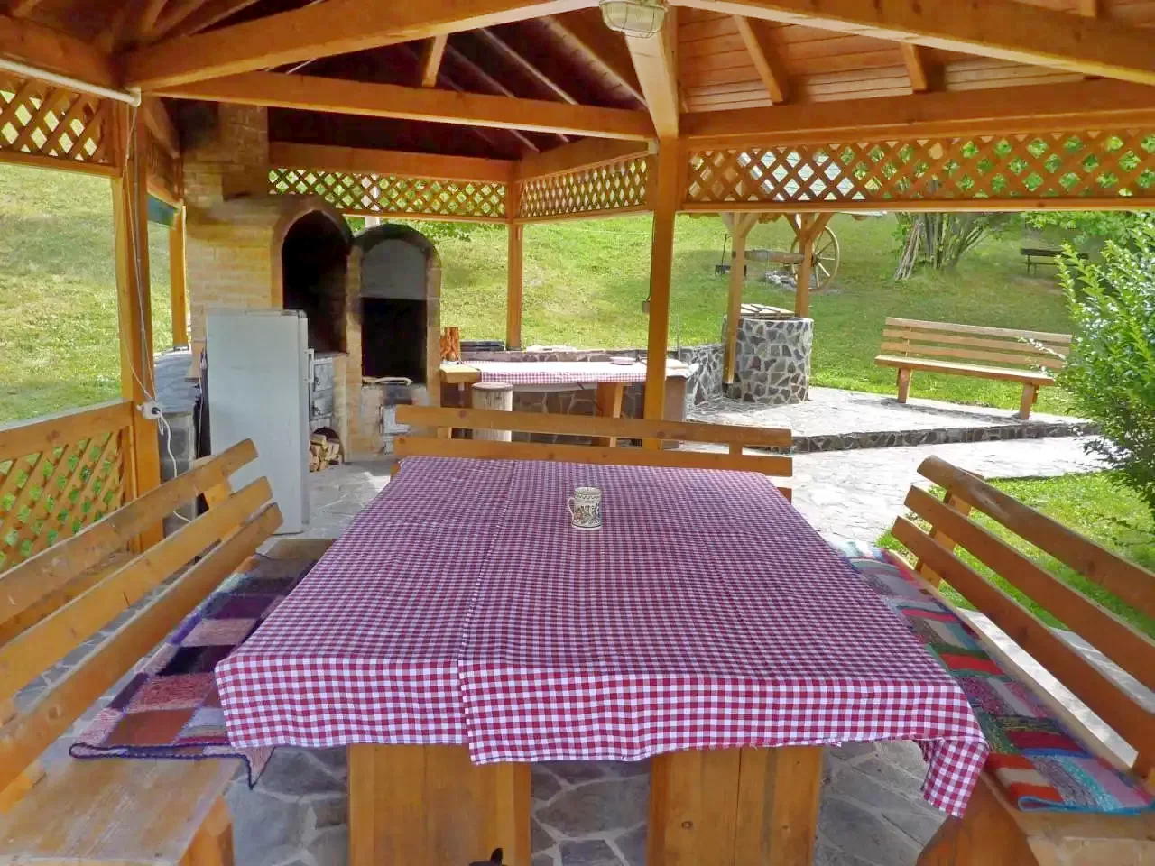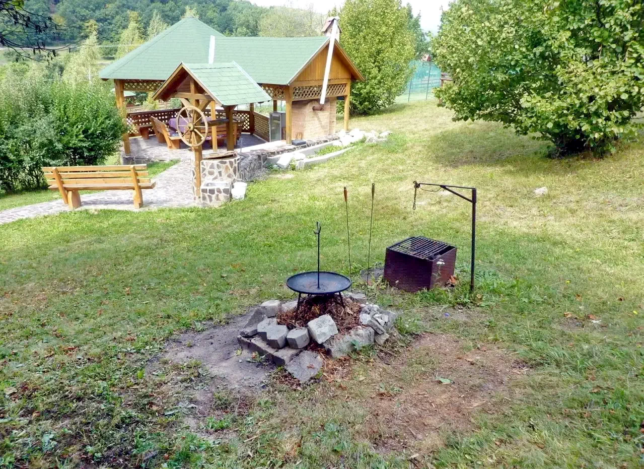 - Zonă de relaxare în grădină, cuptor tradițional pentru grătar, ceaun, disc
