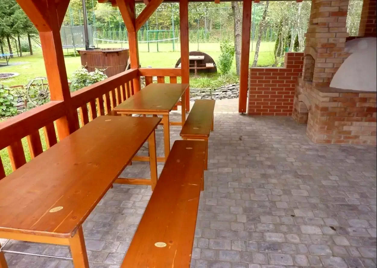 - Pentru gătit în aer liber sunt disponibile: grătar, cuptor tradițional pentru pâine, loc de foc, ceaun și disc.