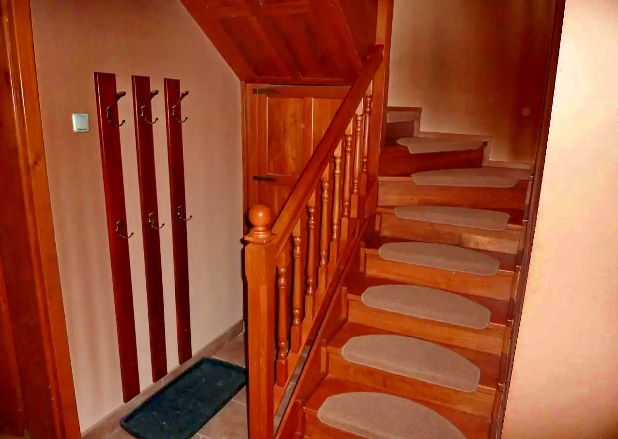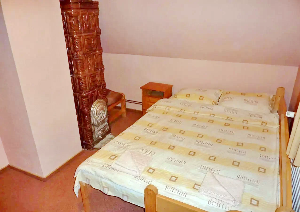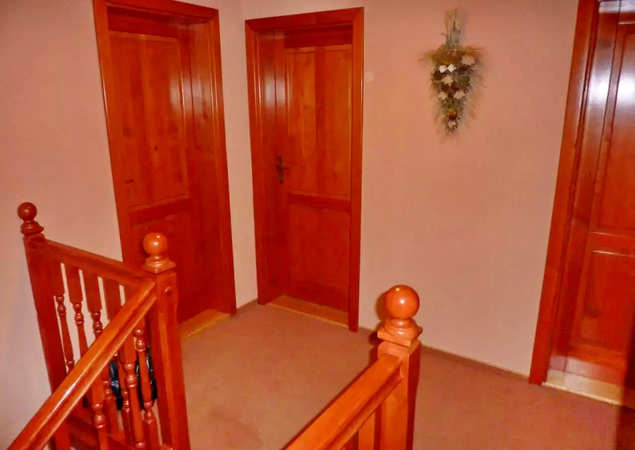- La etaj sunt patru camere: prima cameră cu un pat dublu (2 persoane), a doua cameră cu două paturi duble (4 persoane), a treia cameră cu un pat dublu și un pat single (3 persoane), iar a patra cameră cu două paturi single (2 persoane). Primele două camere au acces la o terasă comună cu vedere panoramică asupra munților.
