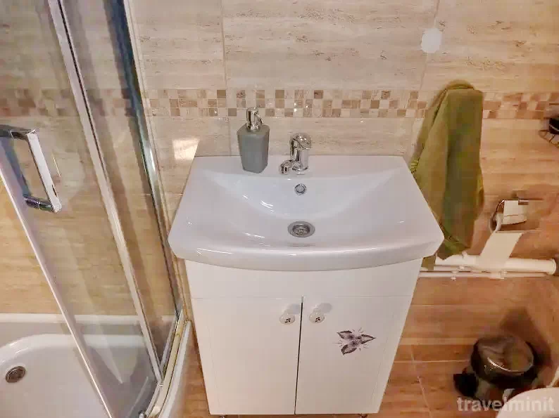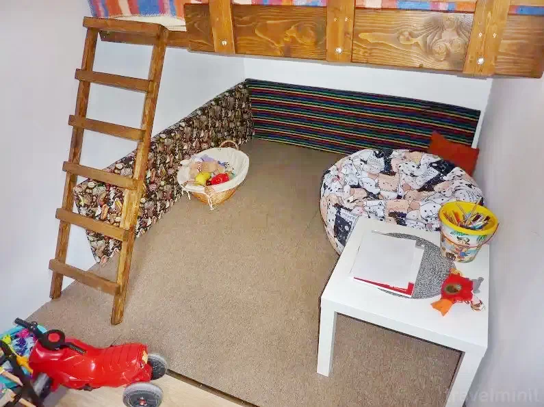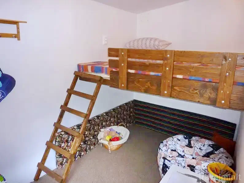 - La parter se află o bucătărie complet utilată, la primul etaj un living spațios cu două paturi simple și o baie, iar la ultimul etaj două dormitoare și o toaletă separată.