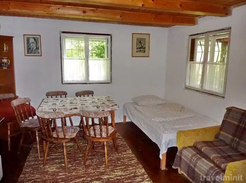 - Dormitoarele sunt dotate cu câte un pat dublu și un pat simplu fiecare. Cabana este încălzită cu șemineu și panouri cu infraroșu, fiind confortabilă și iarna.