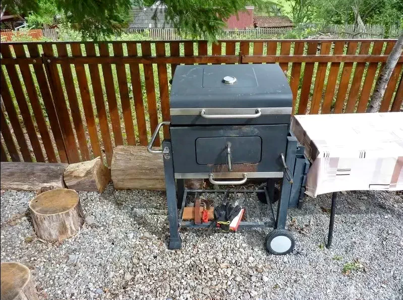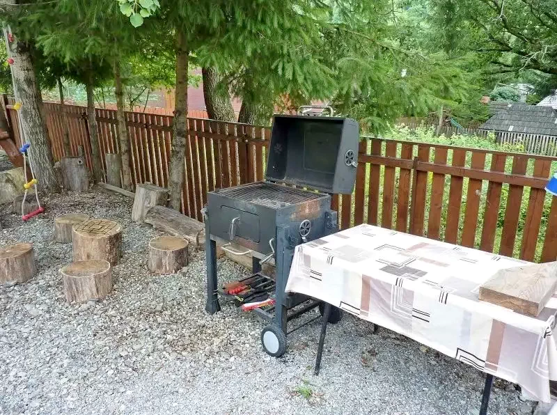 - În curte, un cuptor pentru grătar, ceaun și loc de foc permit gătitul în aer liber, iar foișorul acoperit este perfect pentru a savura mesele în aer liber.
