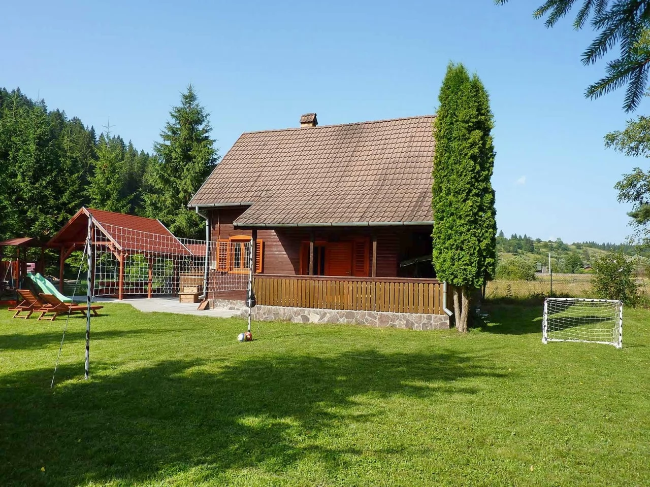 - Curtea de 700 m² oferă numeroase activități în aer liber, iar proprietarul nu locuiește la fața locului, asigurând intimitate deplină.