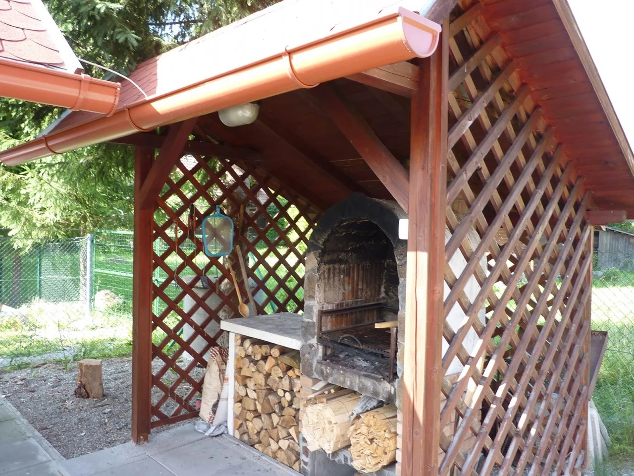 - Pentru pasionații de gătit în aer liber, curtea de 700 m² include un foișor acoperit și o terasă, unde se pot folosi grătarul, ceaunul sau discul, în mijlocul peisajului impresionant al Munților Harghita.