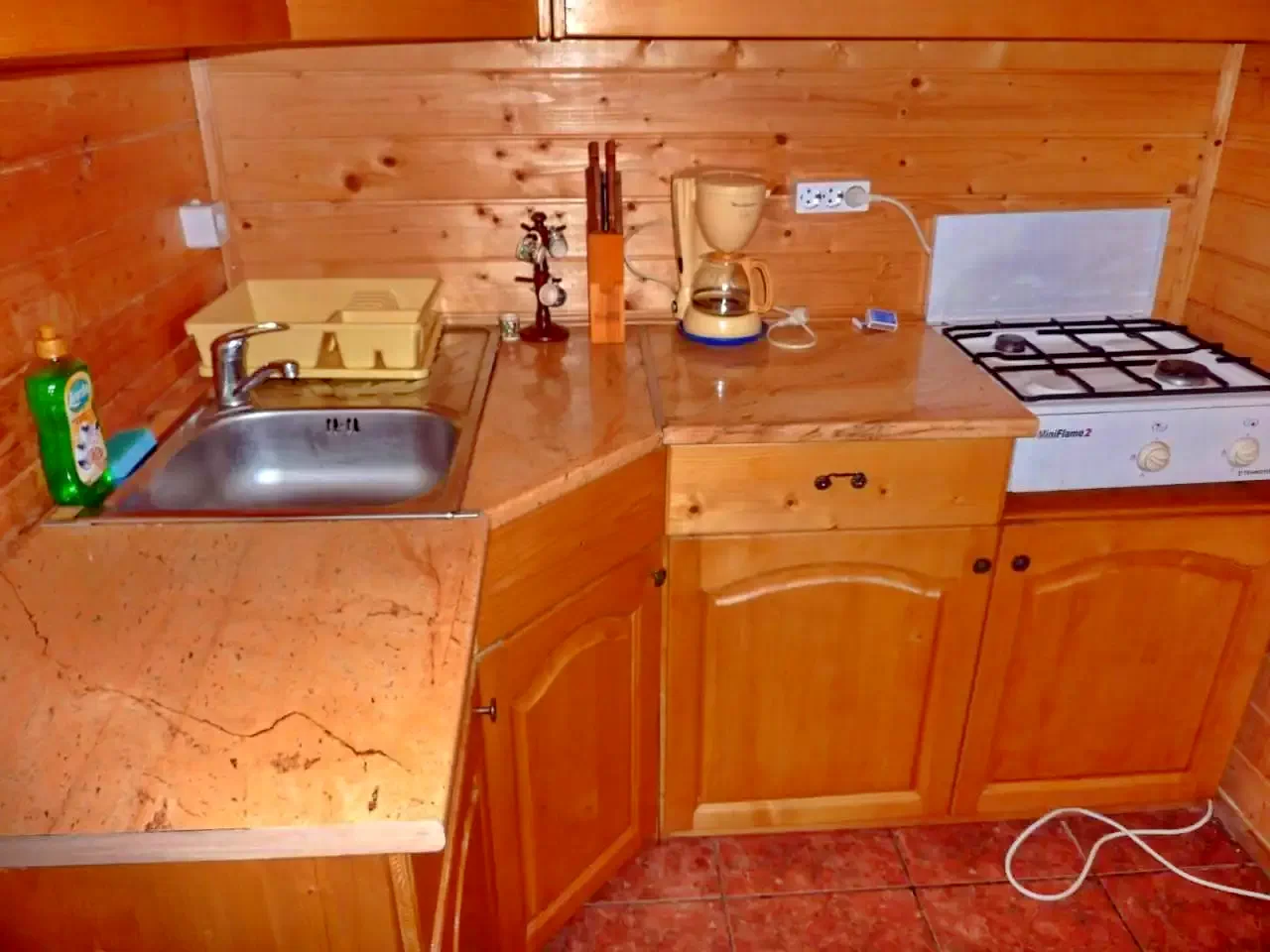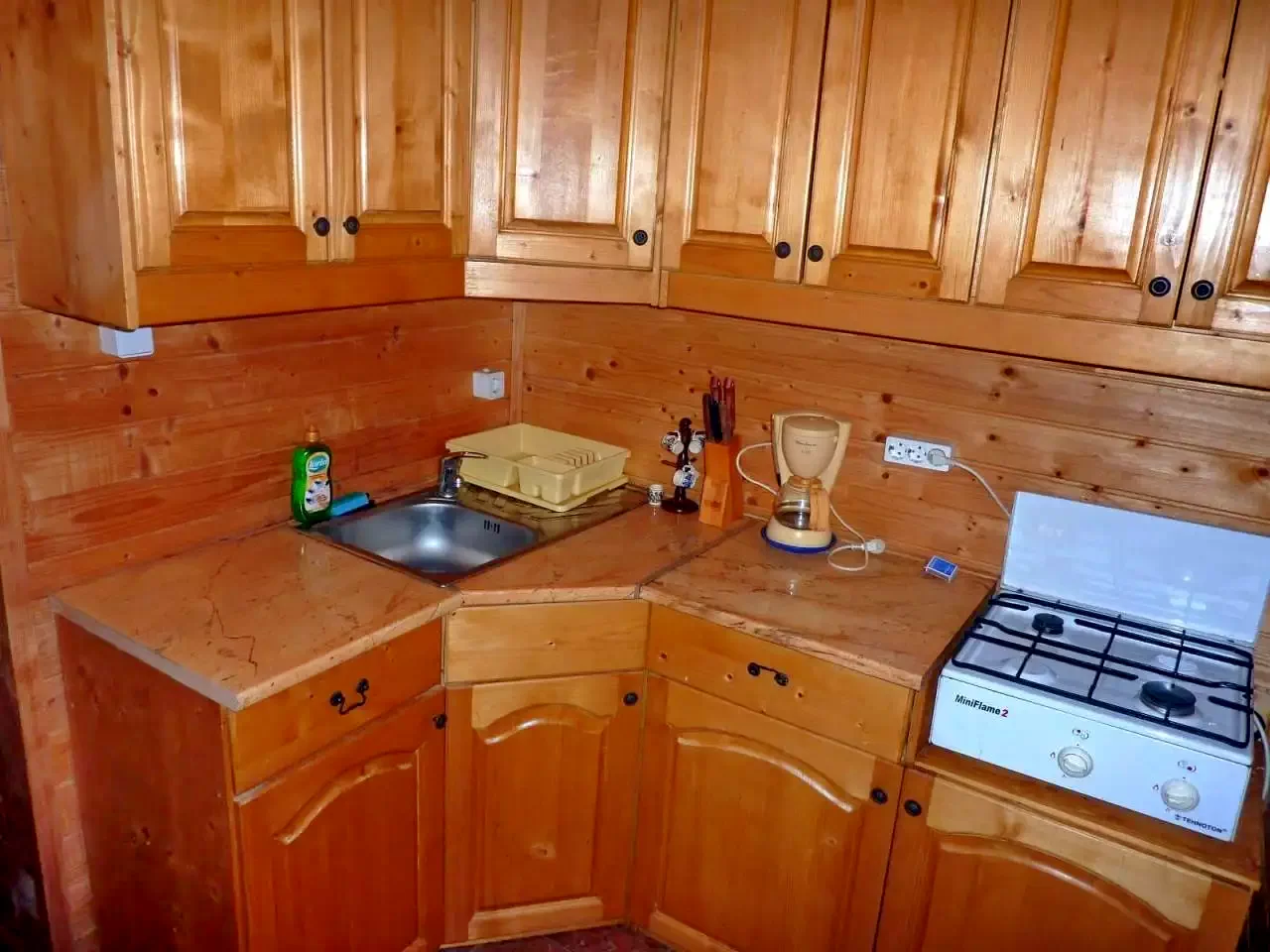 - Cabanele funcționează în regim self-catering, fiecare având o bucătărie modernă dotată cu aragaz pe gaz, frigider, filtru de cafea, vase și tacâmuri.