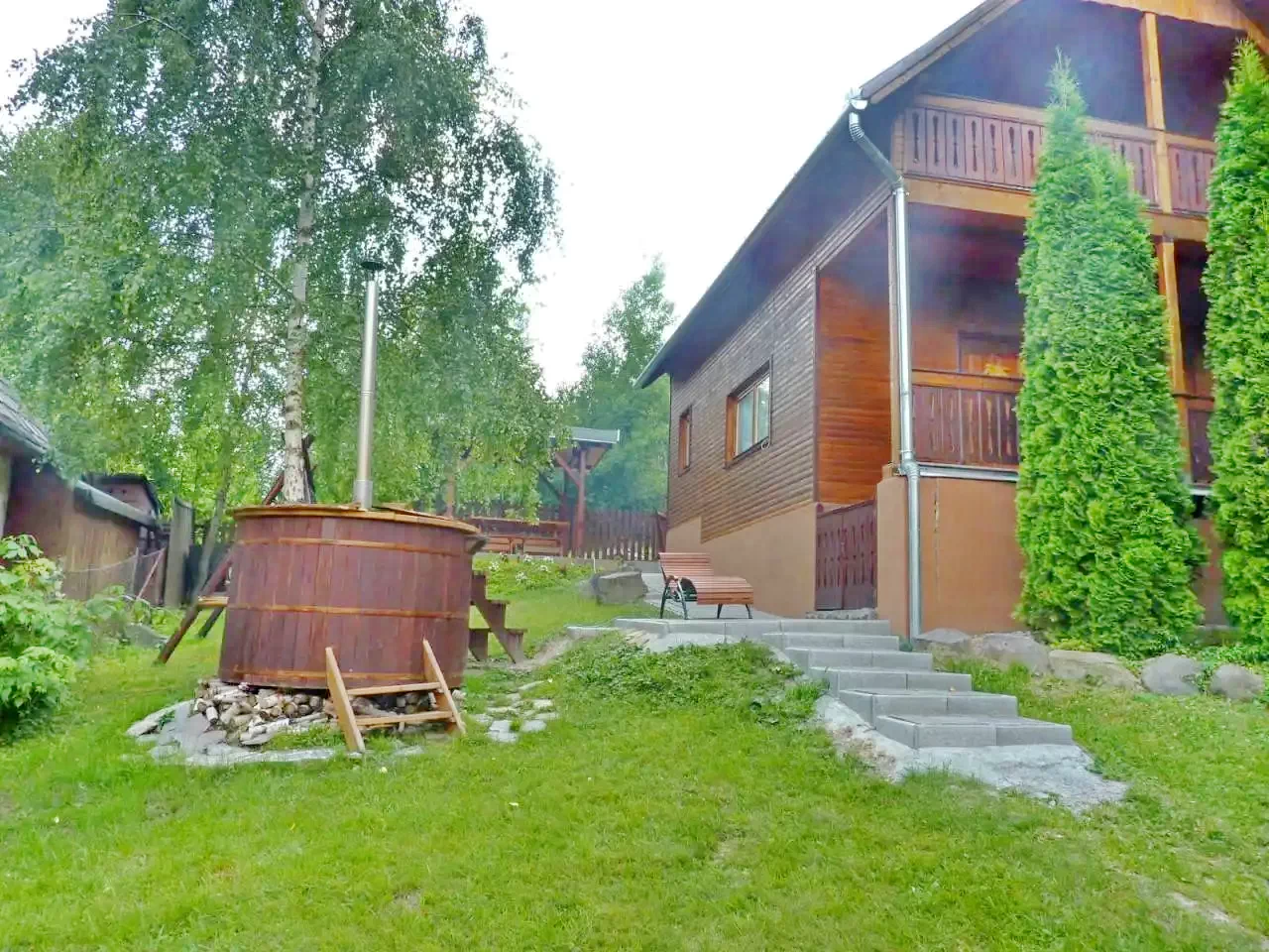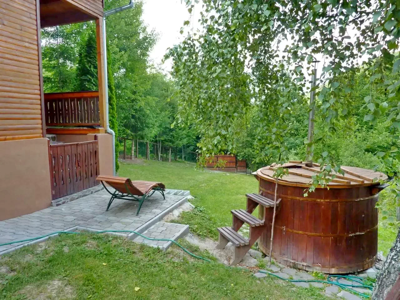 - Curtea de 600 m² oferă pe tot parcursul anului un „Jacuzzi Secuiesc” încălzit (ciubăr), cu o capacitate de 3500 de litri, ideal pentru 6–8 persoane – o veritabilă experiență de wellness.