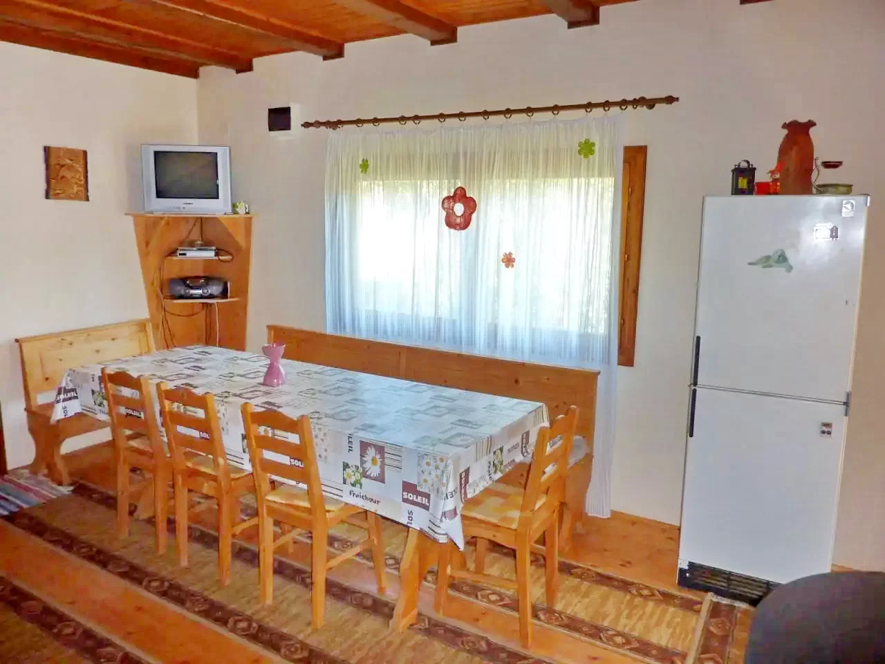 - Bucătăria complet utilată a cabanei pune la dispoziție tot ce este necesar pentru mesele autogestionate: aragaz pe gaz, frigider, cafetieră, vase și tacâmuri.