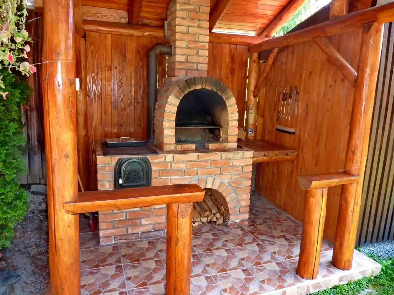 - În curte, aveți la dispoziție cuptor pentru grătar, disc de friptură, ceaun și vatră deschisă pentru preparate tradiționale secuiești savuroase, perfecte pentru o experiență culinară autentică în aer liber.
