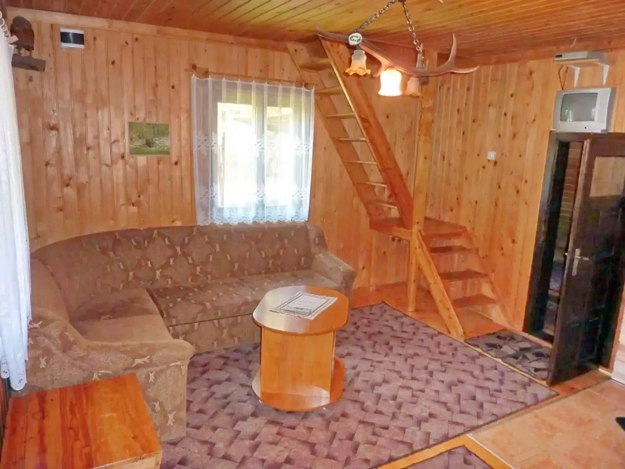 - La parter se află un living spațios cu zonă de luat masa, o bucătărie complet utilată, o baie și un dormitor cu două paturi de o persoană.