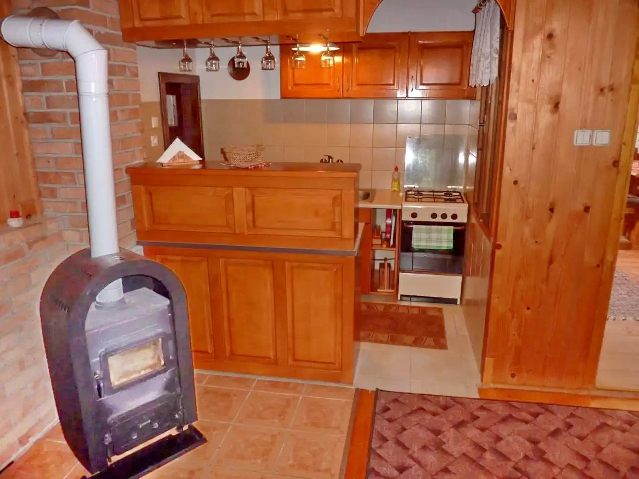 • Bucătărie complet utilată (aragaz pe gaz, frigider, cuptor cu microunde, filtru de cafea, fierbător, prăjitor de pâine, oală sub presiune)