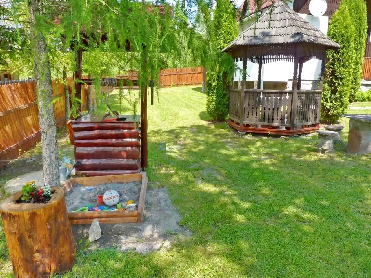 • Curte spațioasă (700 m²) cu loc de joacă și facilități pentru copii