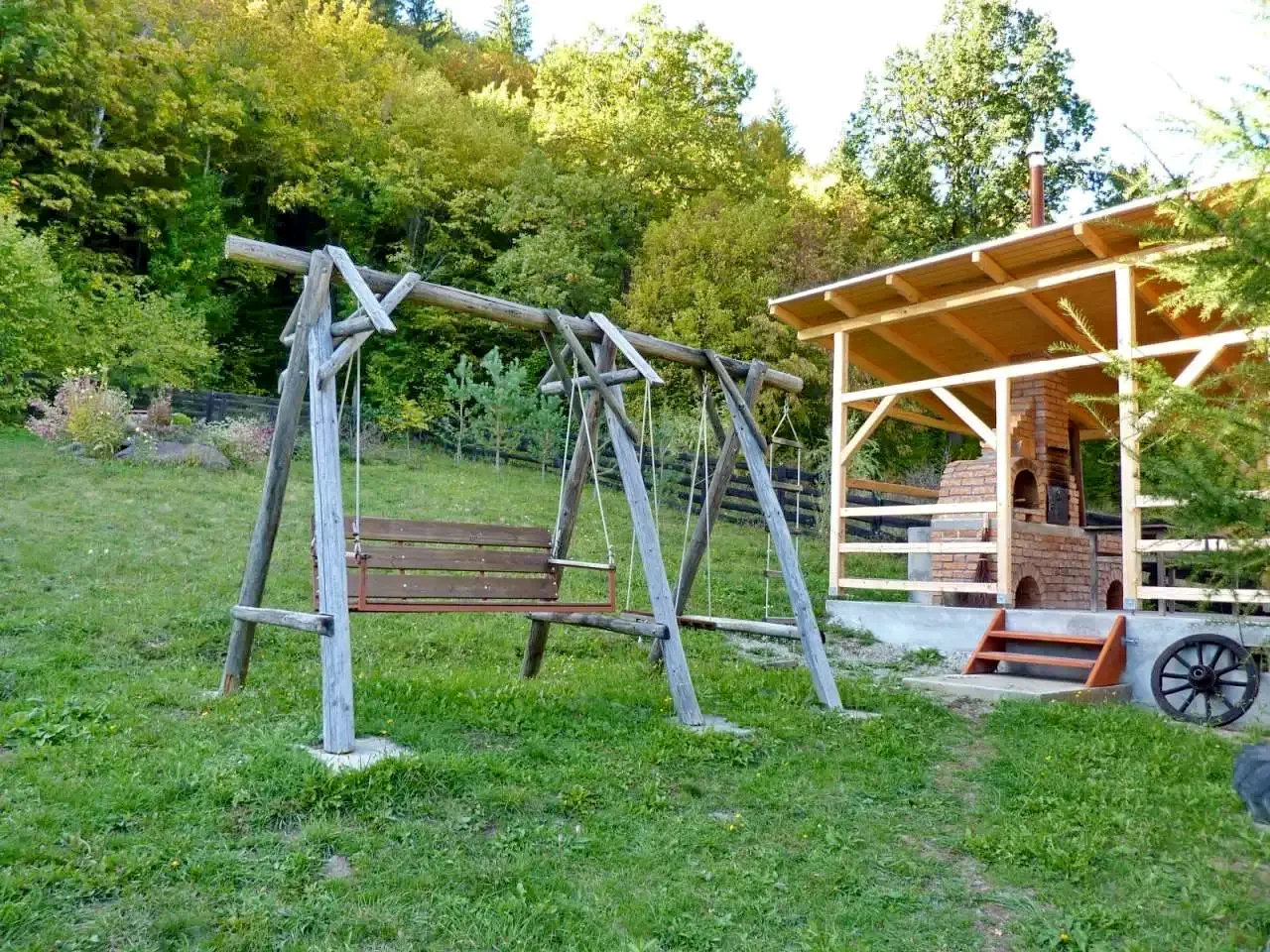 - Curtea de 1200 m² a cabanei oferă diverse activități pentru toate vârstele: leagănul, groapa cu nisip și pavilionul de grădină sunt perfecte pentru momente în familie sau cu prietenii.