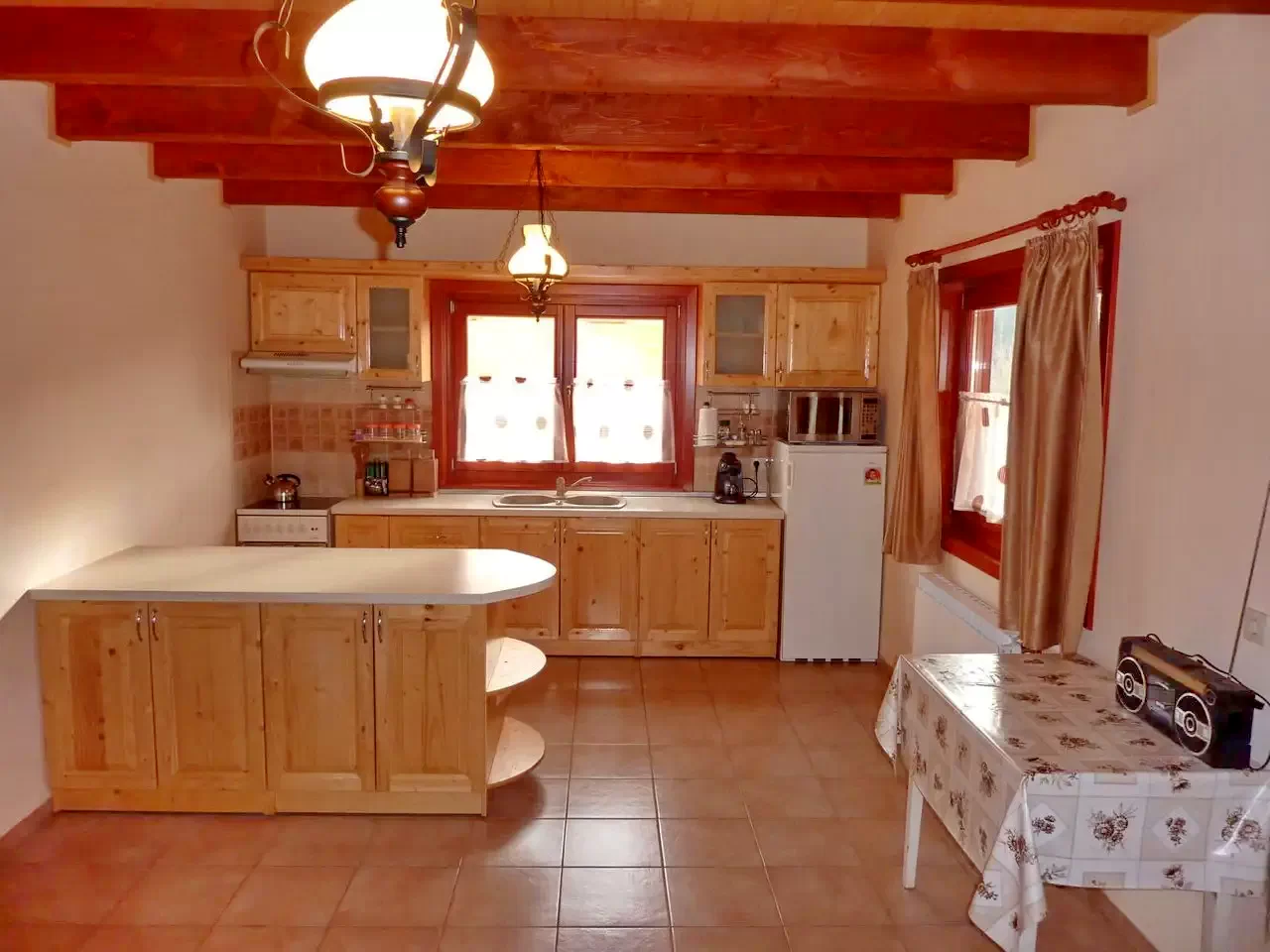 - Încălzirea este asigurată de un șemineu și încălzire centrală cu lemne, apa caldă de un sistem pe lemne.