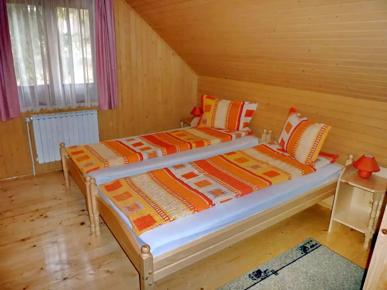 Camere: Două camere cu pat dublu, una cu pat dublu și pat single.
