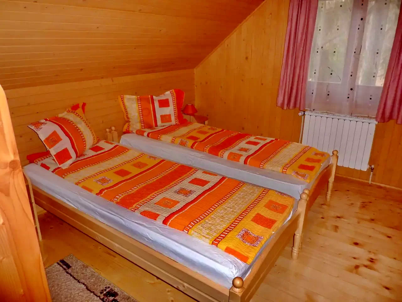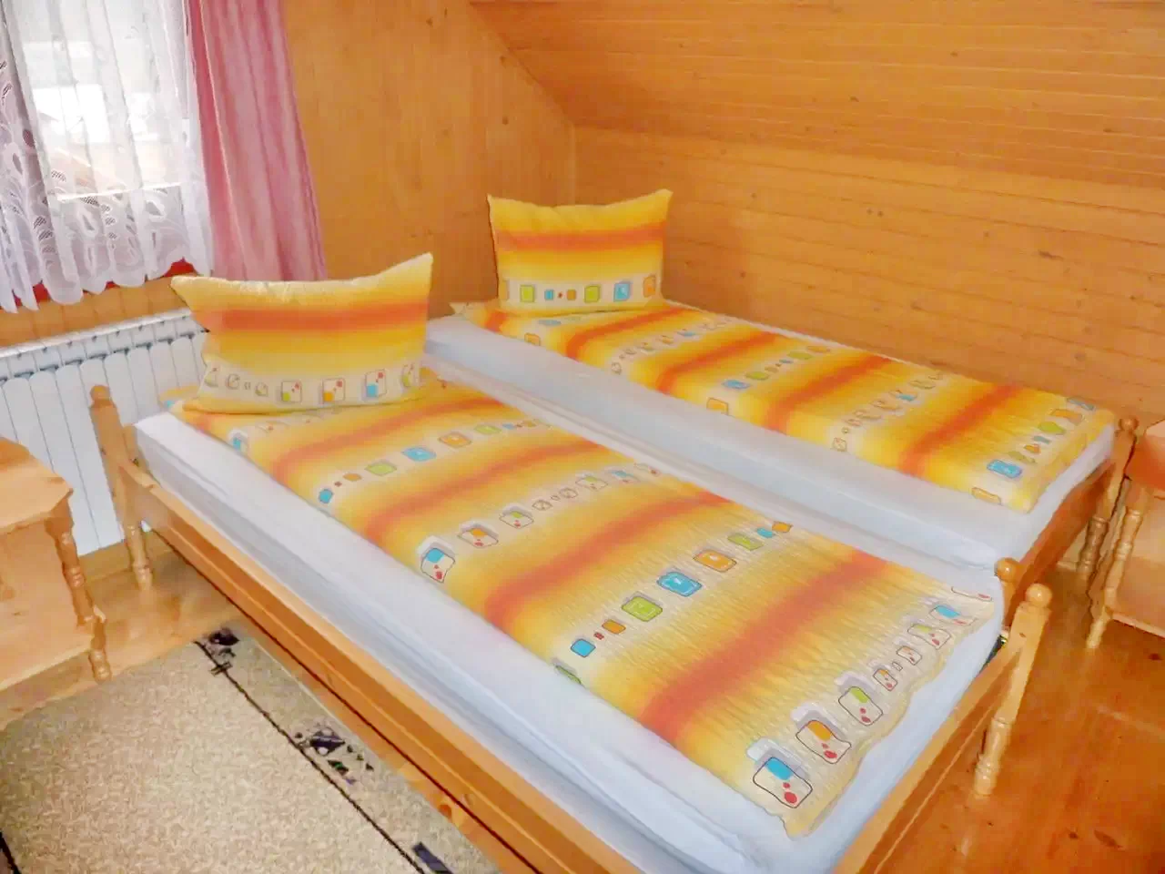 Camera: 1 pat supraetajat (partea de jos dublu, partea de sus single) + 1 pat single (2+2 persoane)