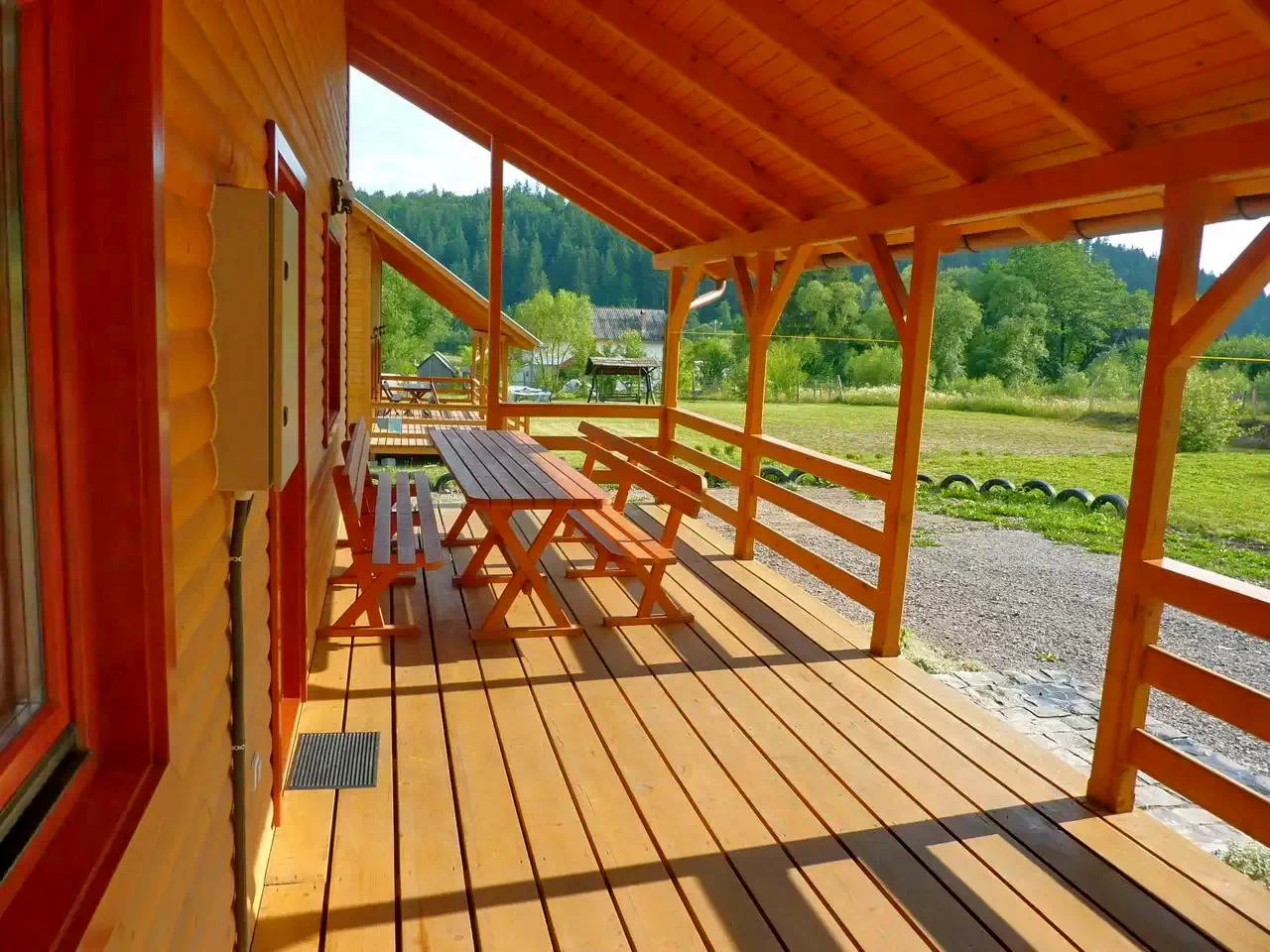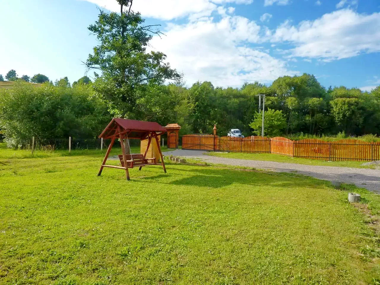 - Curtea de 2000 m² oferă ciubăr încălzit, terasă și leagăn pentru relaxare completă.