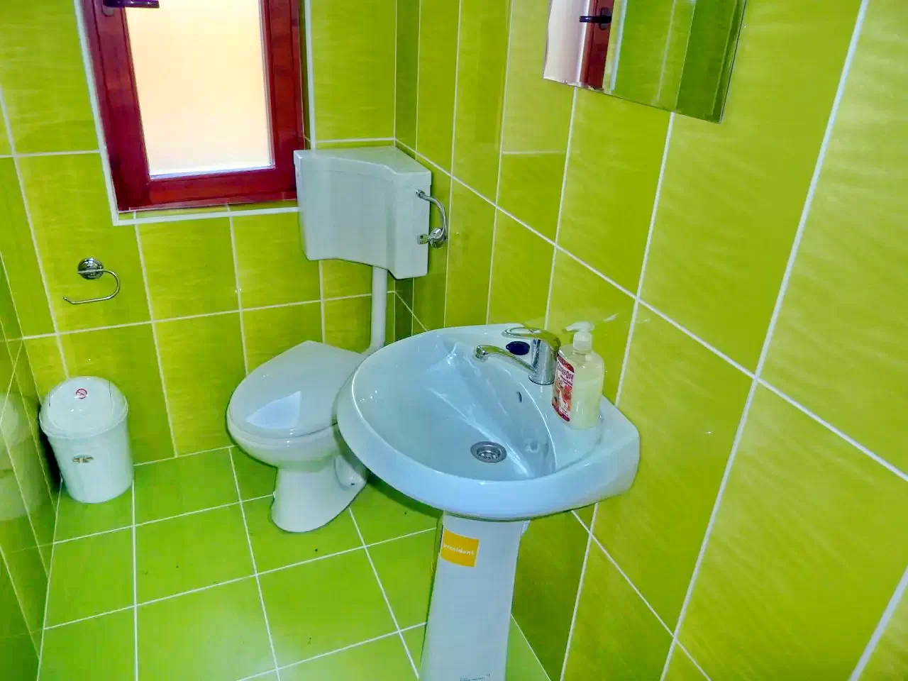 Toaletă separată: Chiuvetă. Curtea de 2000 m² include ciubăr încălzit, terasă, leagăn și parcare închisă, cu alimentare electrică stabilă și acoperire mobilă.