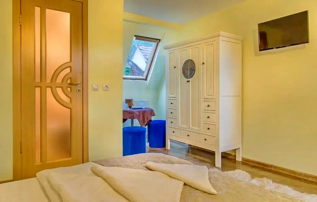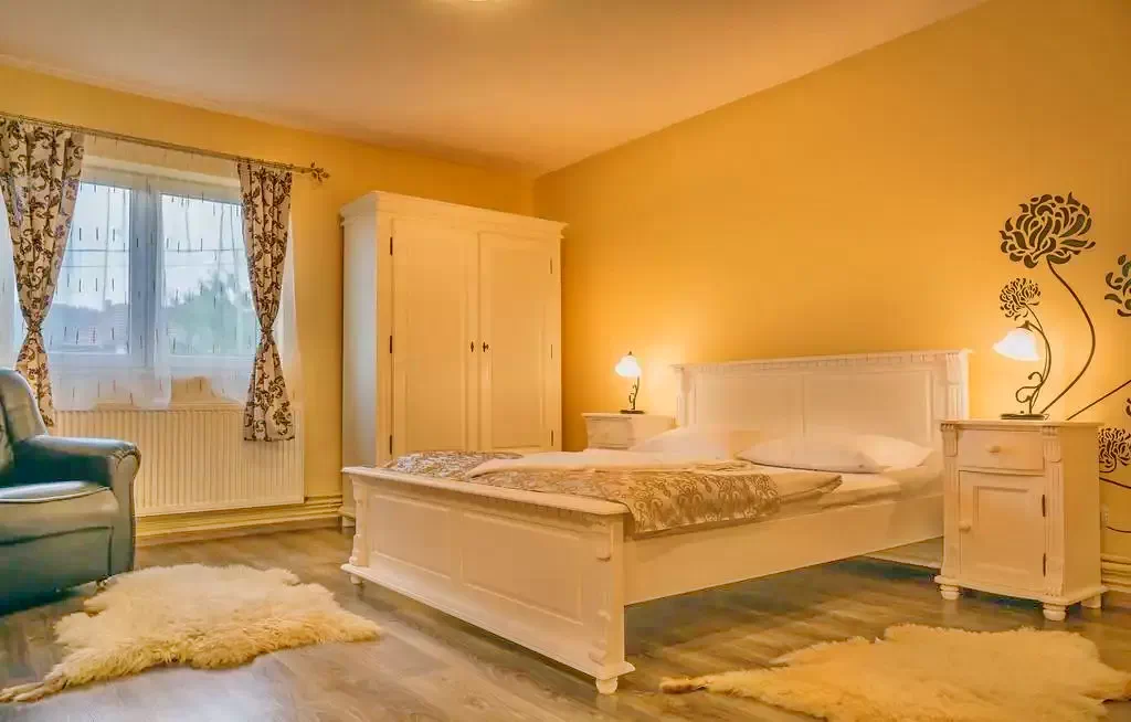 - Pensiunea dispune de 8 camere duble matrimoniale, o camera cu 4 locuri si un apartament, toate avand bai proprii, televizor prin cablu LED si o zona de relaxare unde puteti servi in linistea unui vechi sat sasesc o ceasca de cafea dimineata sau un vin bun seara.