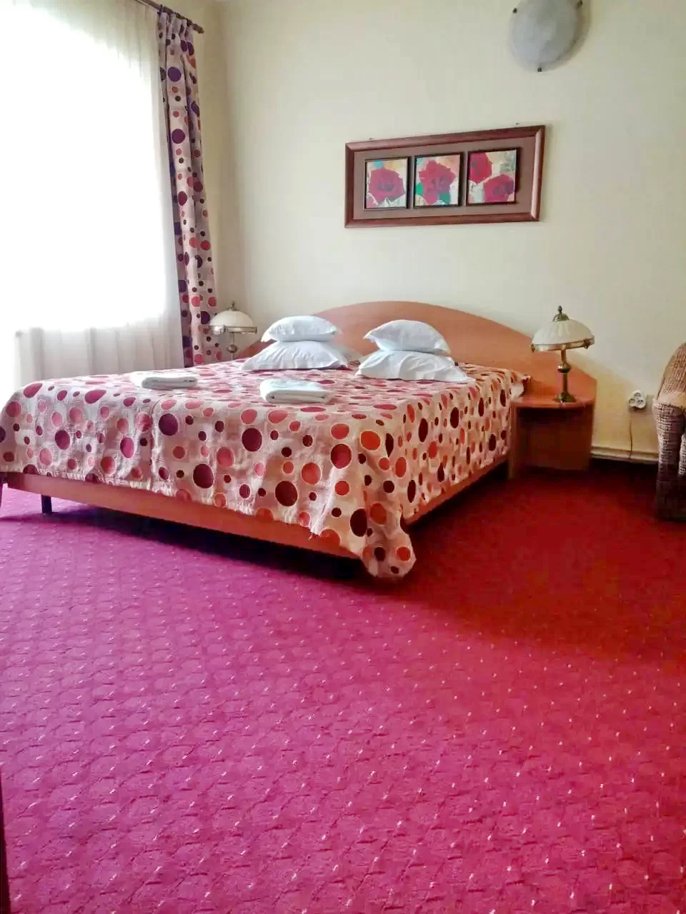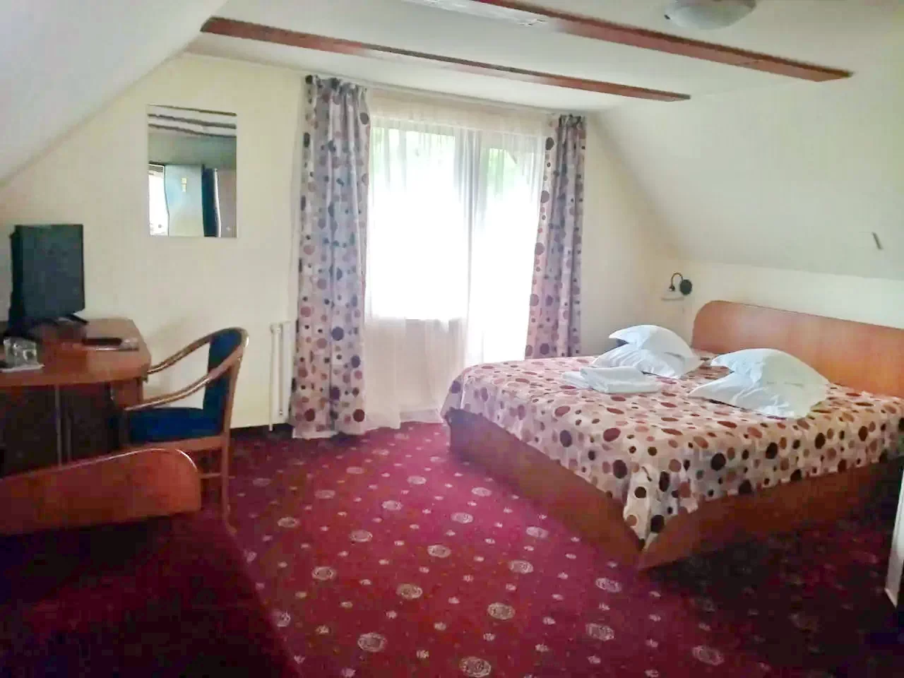 - Dispune de 63 de spatii de cazare, camere duble, twin/matrimoniale, superior/economy, toate fiind dotate cu cabina de dus, grup sanitar propriu, televizor, telefon, minibar, WI-FI gratuit.