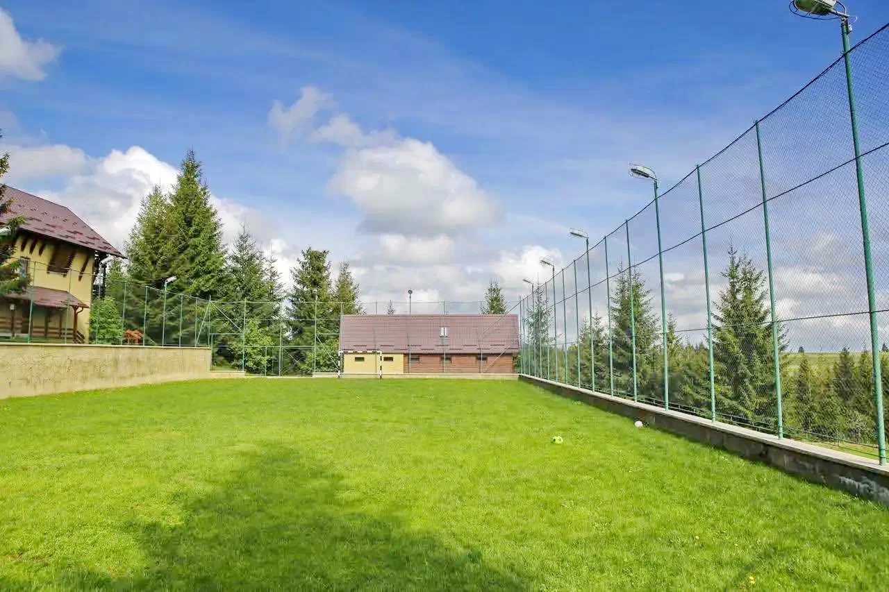Ofera intimitate grupurilor, deoarece pensiunea este amplasata pe un teren de peste 20.000 m2 unde se regasesc si zonele de agrement, iar camerele sunt identice, fiecare avand baie proprie si balcon mare, oferind aceleasi conditii fiecarui membru din grup.