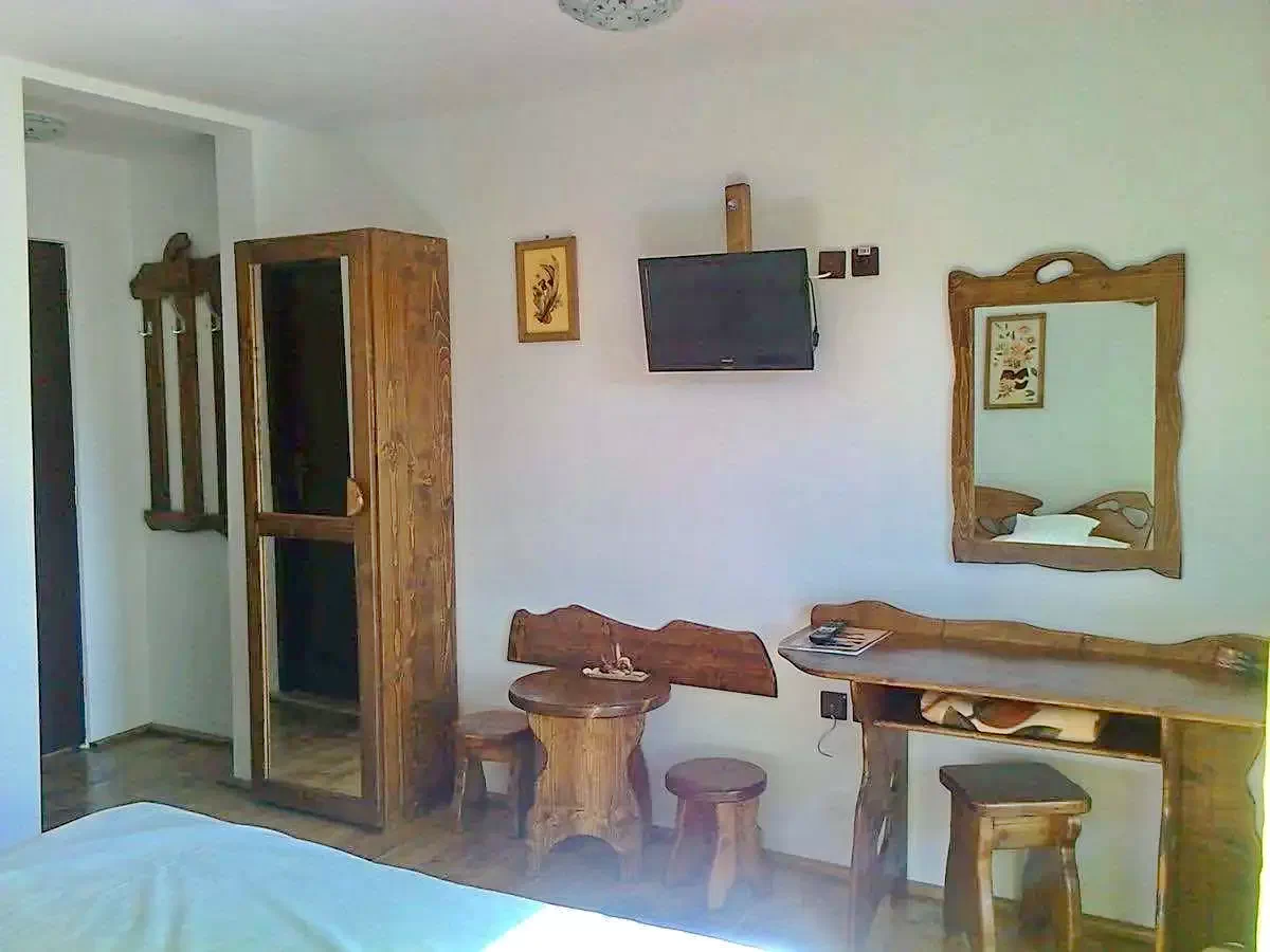 - 8 camere cu pat matrimonial, cu mobilier rustic din lemn masiv, televizor lcd, baie in camera si balcon propriu spatios;