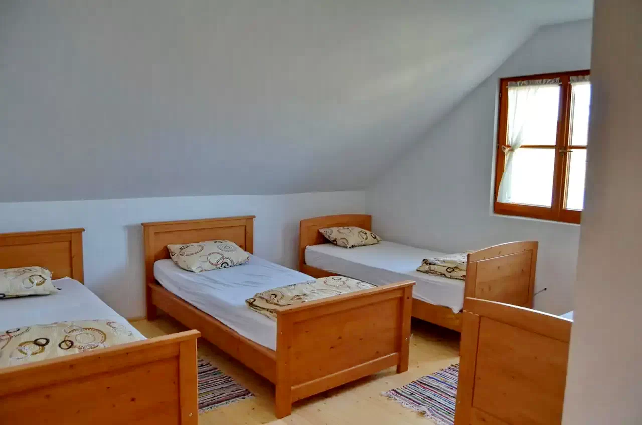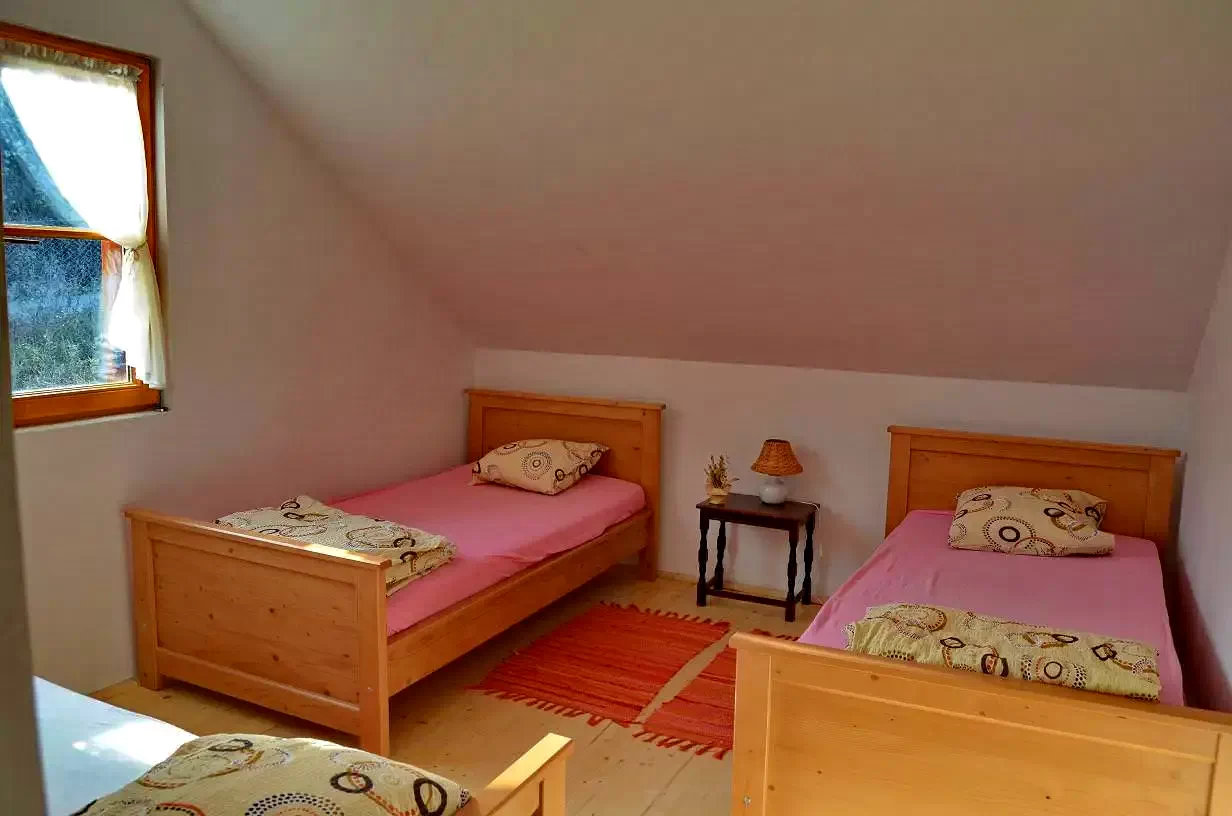 - Casa de oaspeți oferă cazare confortabilă pentru 16 persoane în trei camere separate. Camerele sunt spațioase, amenajate cu gust și fiecare dispune de baie proprie.