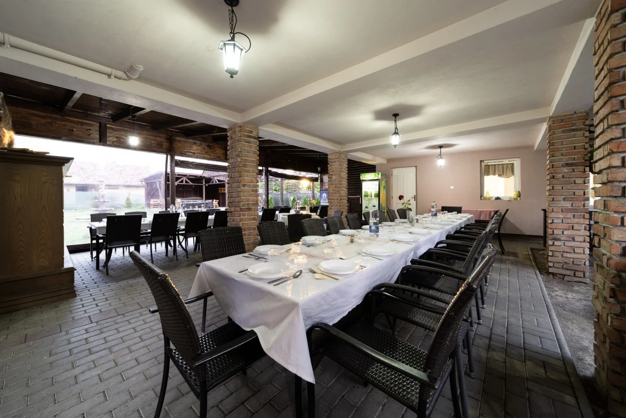 - Sală de mese (42 locuri) și terasă (zonă pentru fumat)
