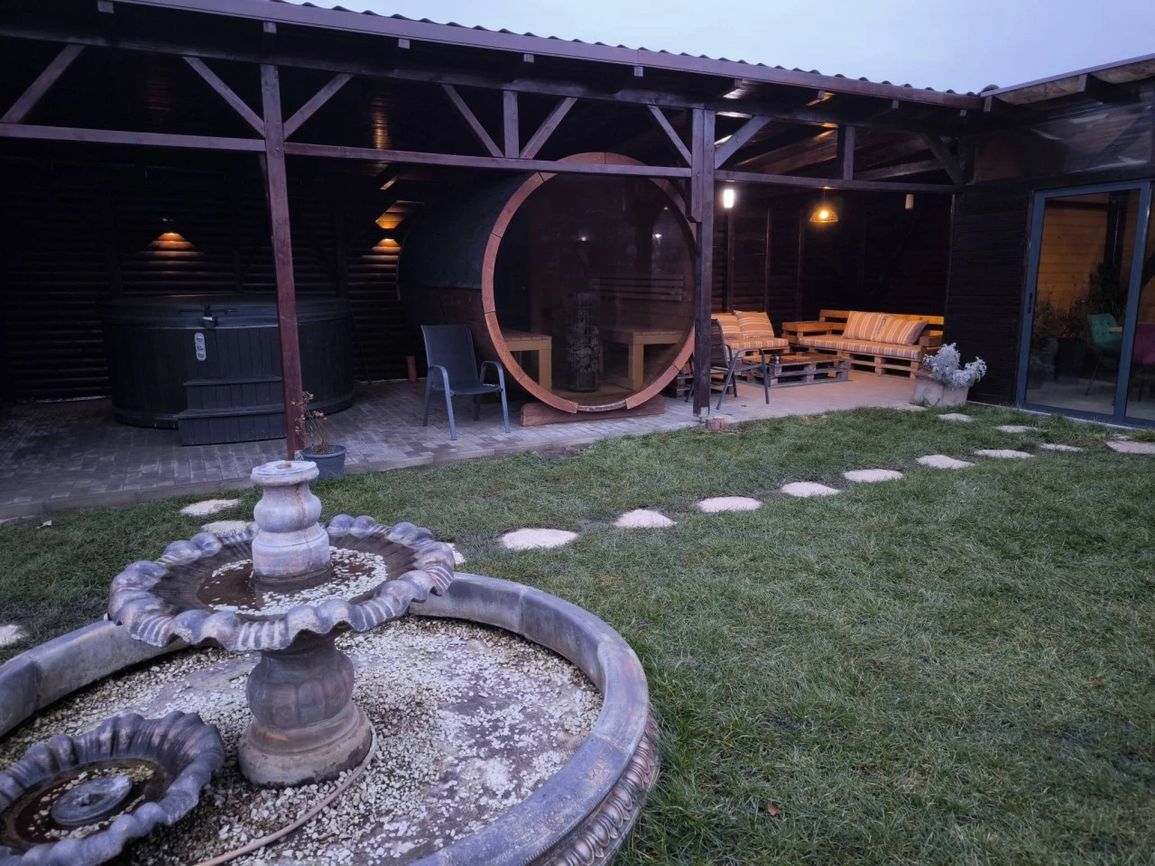 - Zonă pentru grătar și ceaun