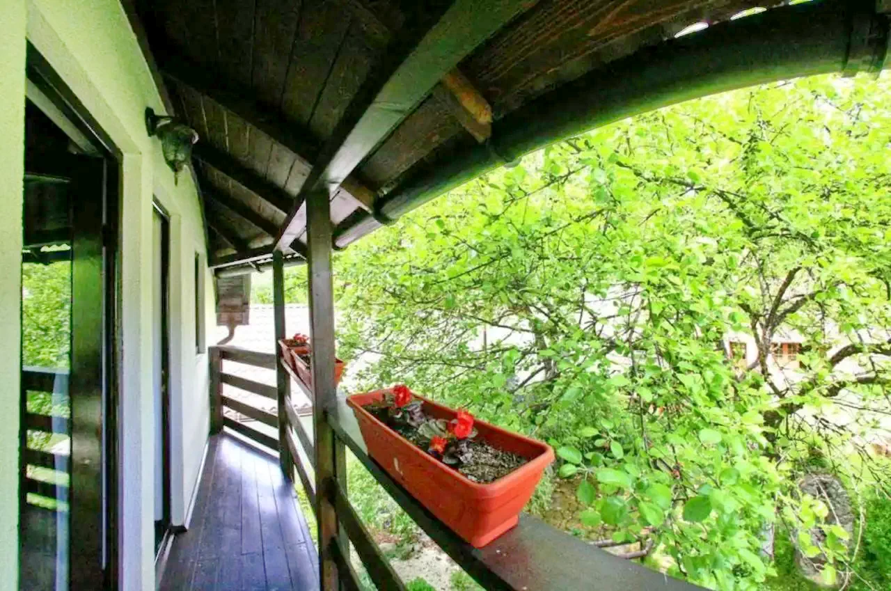 In curte veți găsi: grătar, foișor, bazin cu păstrăvi, parcare, spațiu verde pentru copii, animale de casa si o livada de meri.
