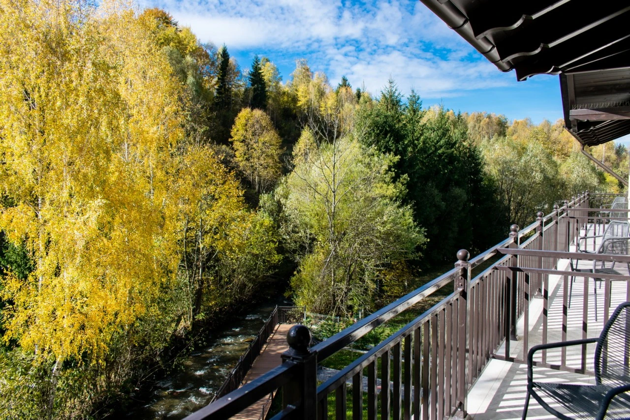 - Fiecare cameră este dotată cu pat matrimonial, balcon privat cu vedere la munte sau parc, baie proprie cu cabină de duș, televizor LCD + cablu, minibar și acces gratuit la internet WiFi.