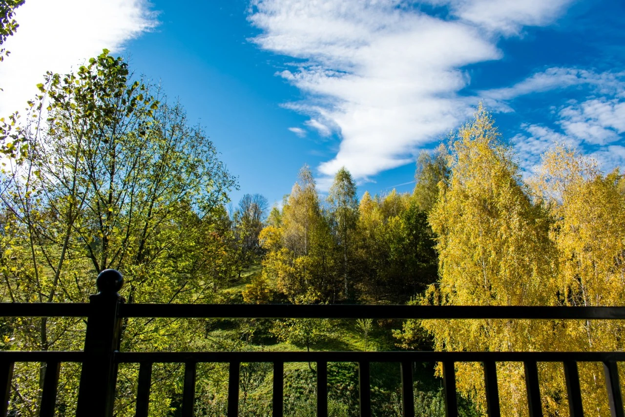 - Fiecare cameră este dotată cu pat matrimonial, balcon privat cu vedere la munte sau parc, baie proprie cu cabină de duș, televizor LCD + cablu, minibar și acces gratuit la internet WiFi.