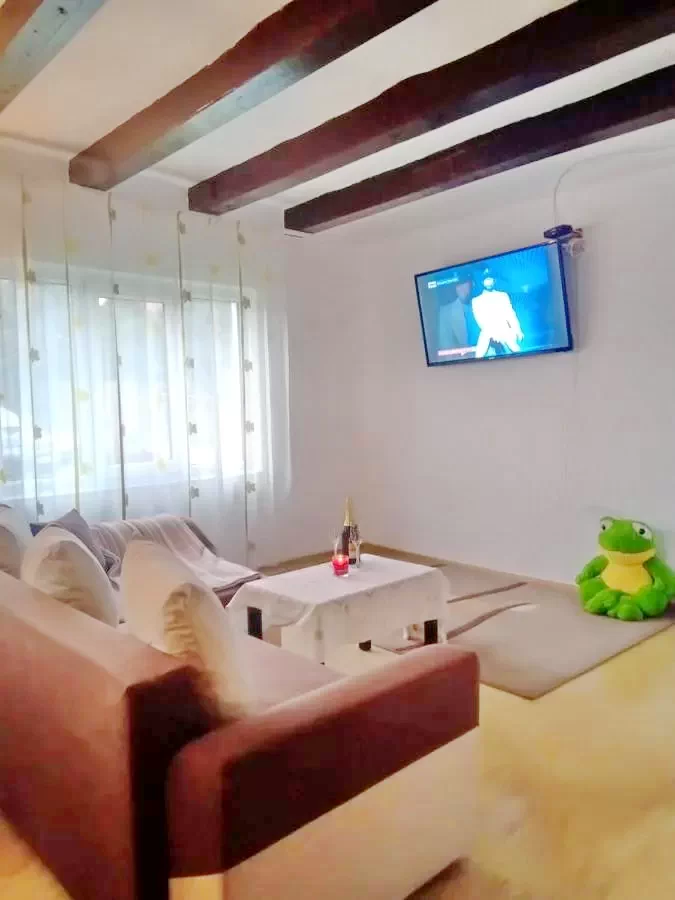 - Living spațios cu televizor, ideal pentru momentele petrecute împreună.