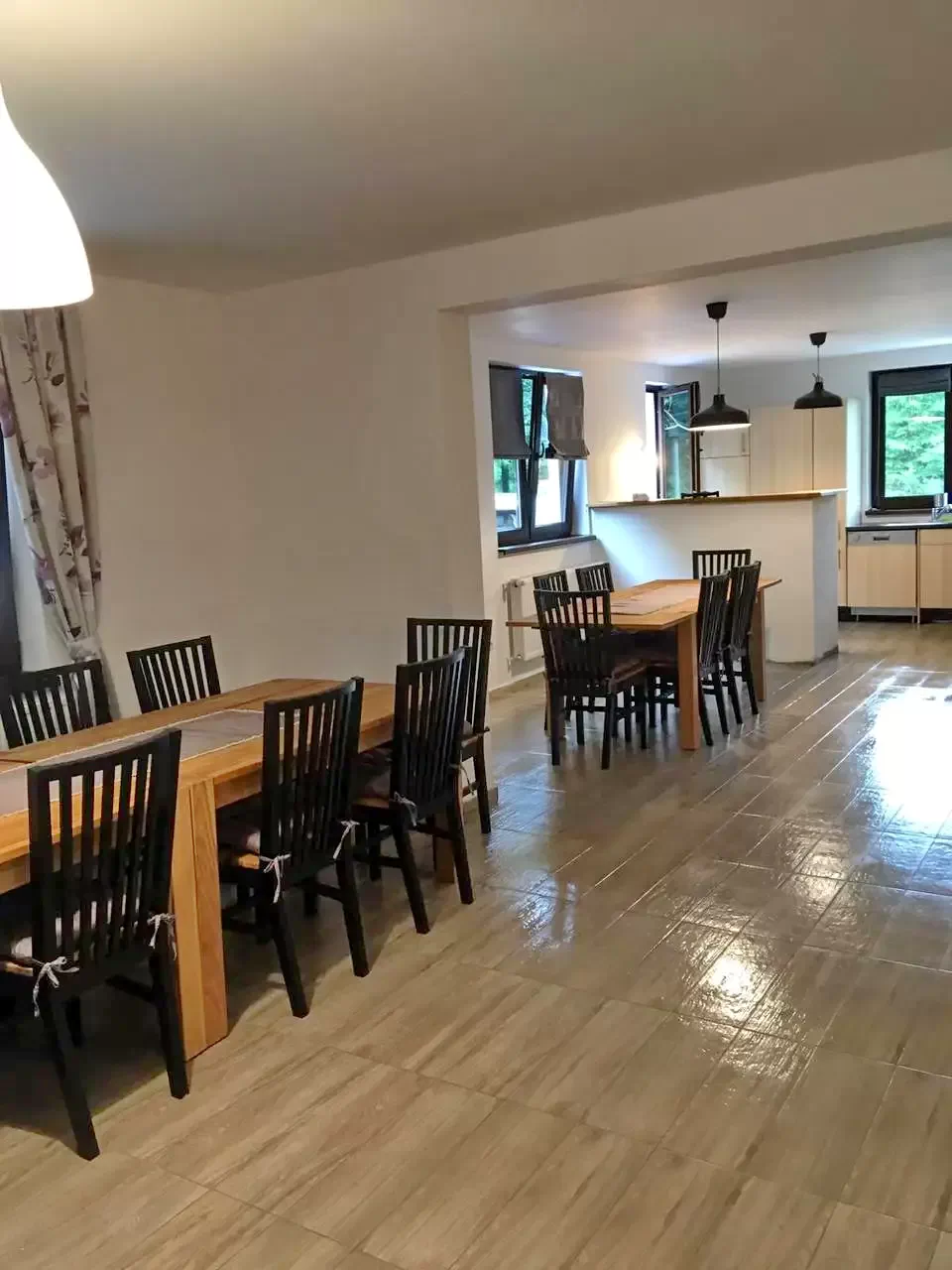 - Sală de mese separată, încălzită, dotată cu bucătărie complet echipată, masă de biliard, darts, loc de dans, televizor și muzică.