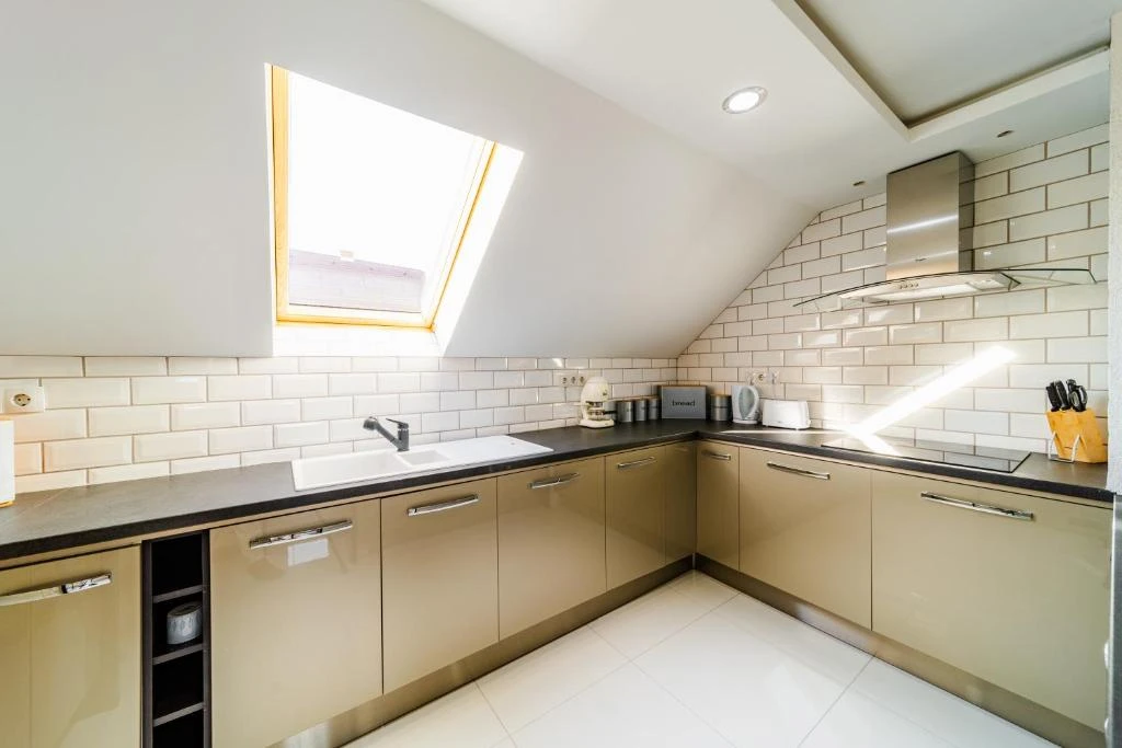 Echipamente moderne de bucătărie: espressor, cuptor, plită, cuptor cu microunde, mașină de spălat vase