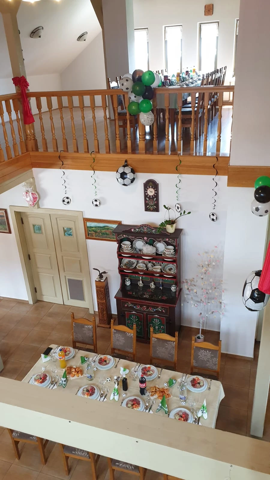 - Sala de mese spațioasă, decorată cu mobilier tradițional, și galeria acesteia sunt perfecte pentru organizarea de evenimente, fie ele familiale sau corporate.