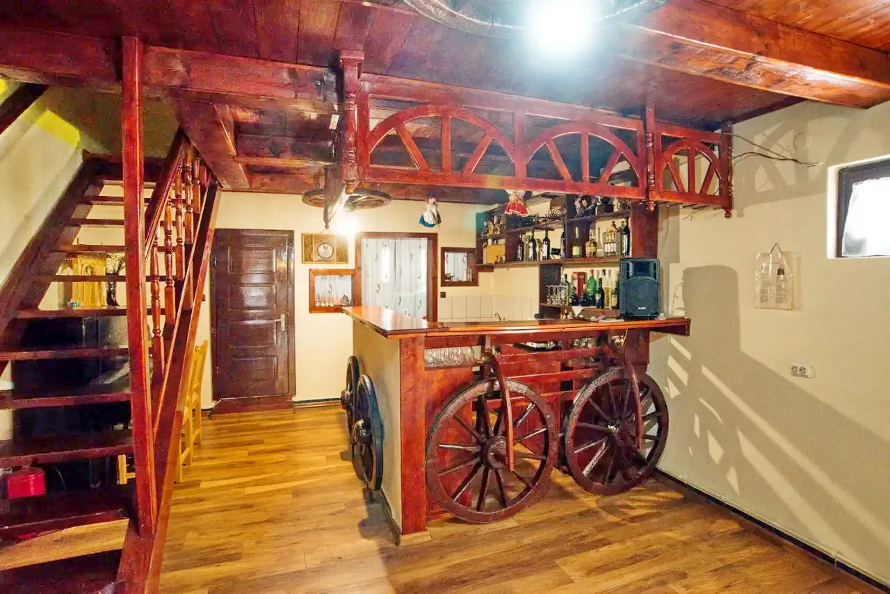 - Sală de mese și bar: Pensiunea dispune de o sală de mese spațioasă și un bar, cu o capacitate de până la 50 de persoane.