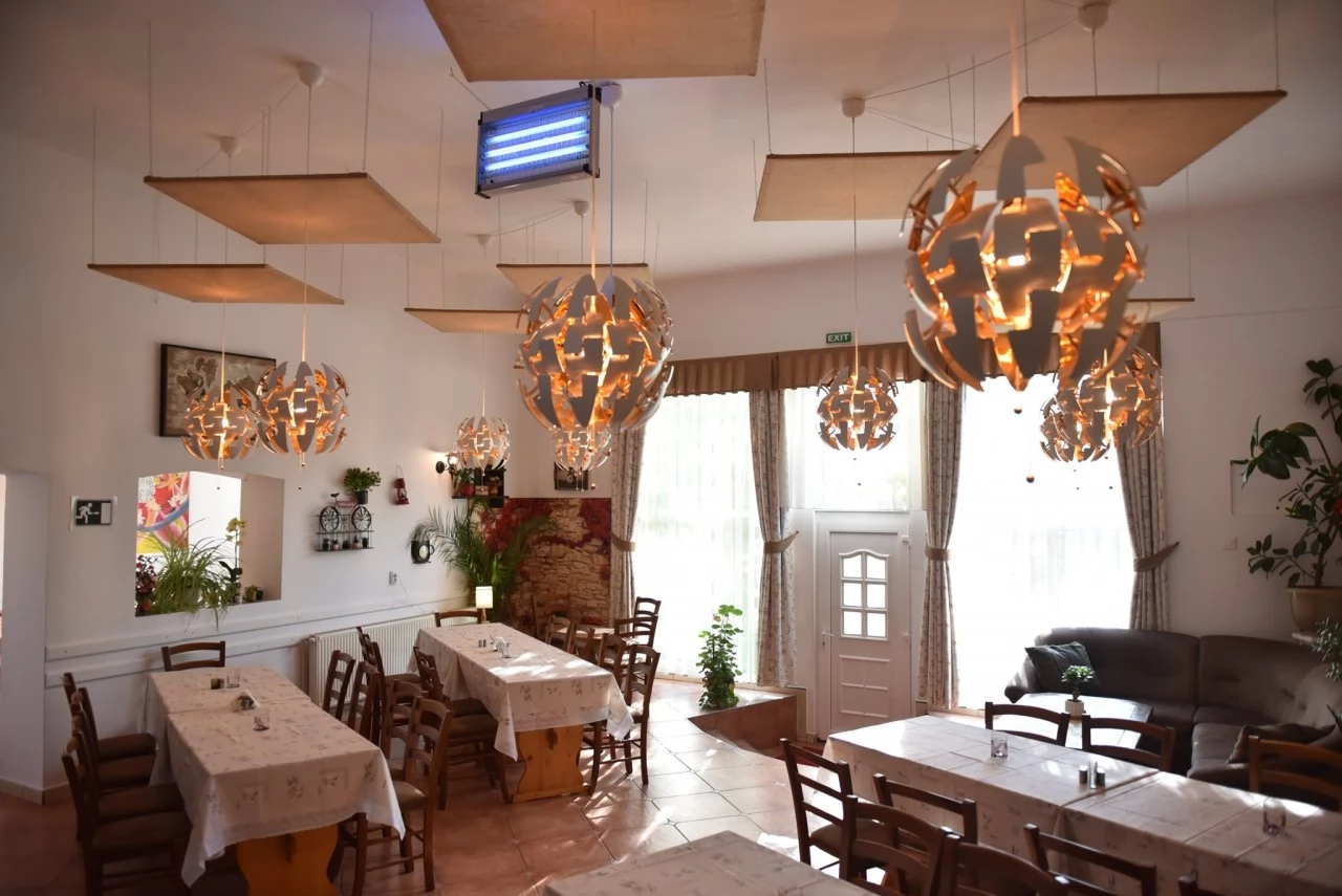 Atât turiştii individuali, cât şi grupurile organizate pot lua masa în restaurantul de 70 de locuri al pensiunii, unde pot mânca alimente proaspăt preparate din ingrediente din ferma propriei pensiuni, iar ocazional (la cerere) pot participa la divertisment muzical.