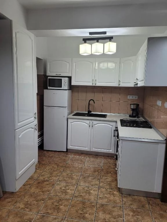 - Bucătărie complet utilată (frigider, aragaz, cuptor cu microunde, cafetieră, veselă și tacâmuri)