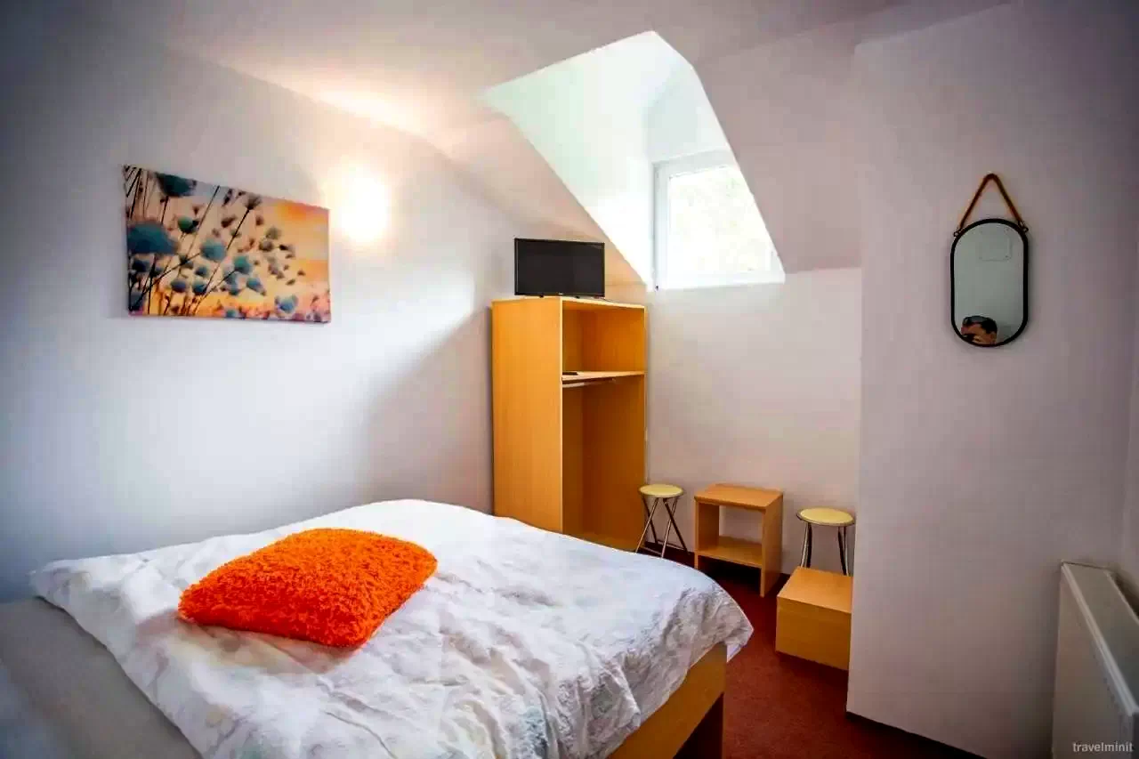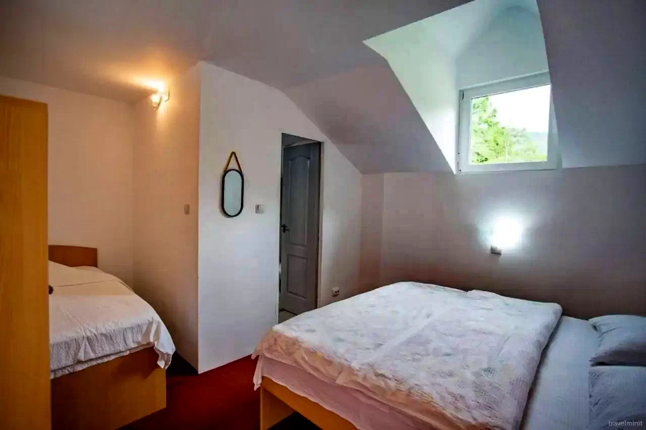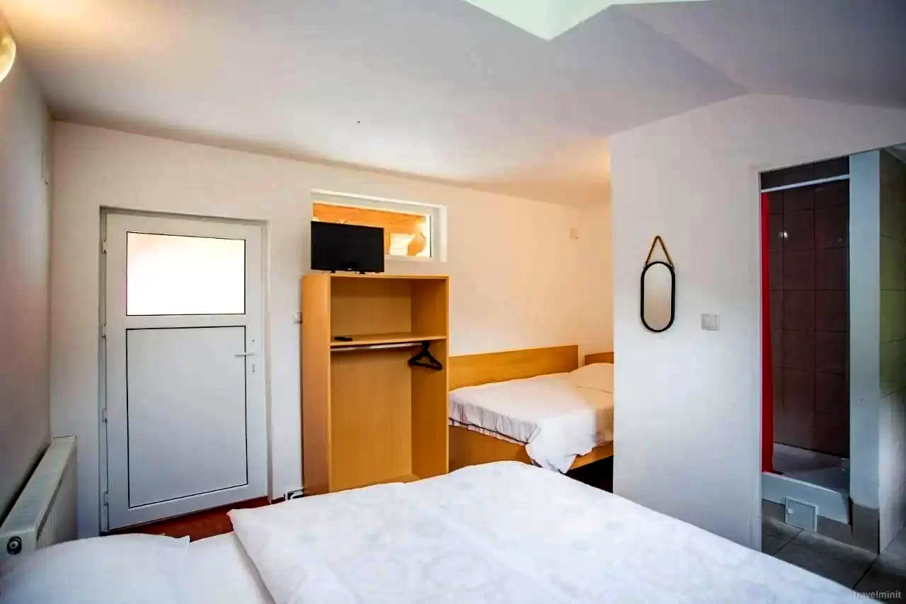 - 1 camera tripla cu un pat matriminial si un pat simplu, baie proprie, TV