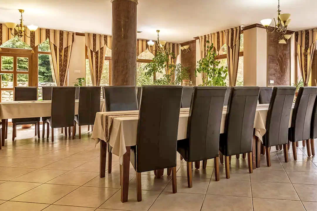 - Restaurantul pensiunii poate fi transformat cu ușurință într-o sală de conferințe pentru întâlniri profesionale, traininguri de team-building sau chiar întâlniri sau evenimente de familie.