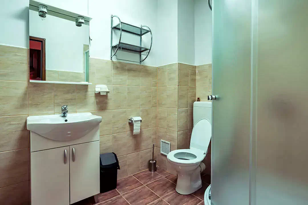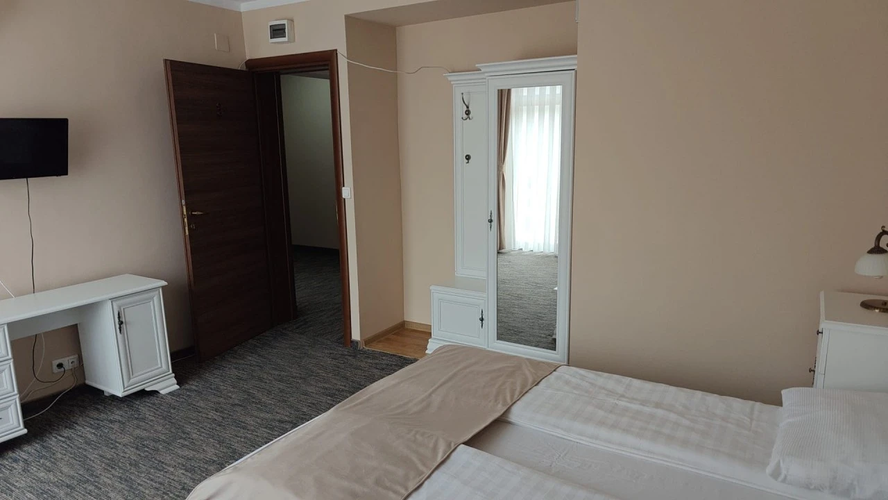 - 2 apartamente: 2 dormitoare, living cu canapea, 1 baie
