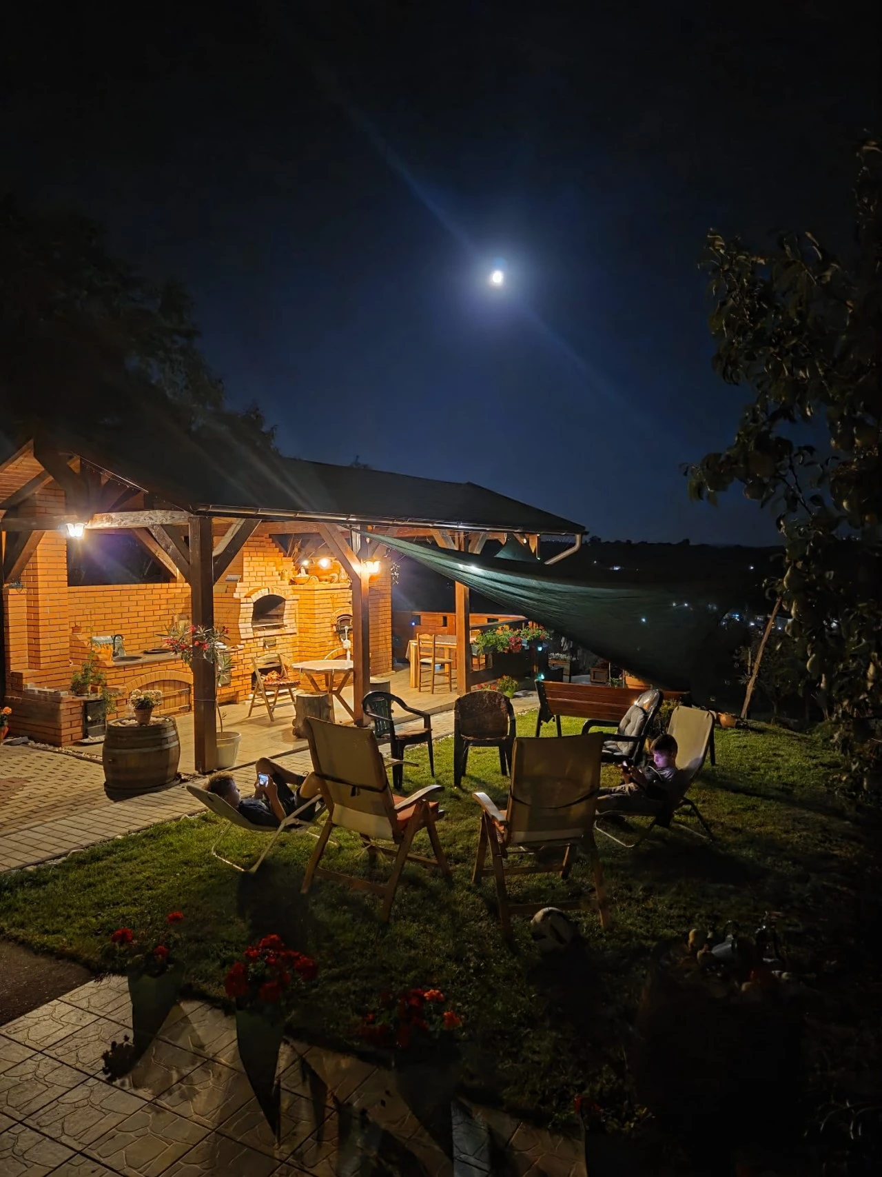 - Există un grătar și un șemineu exterior, locuri perfecte pentru o masă comună sau o adunare cu prietenii.