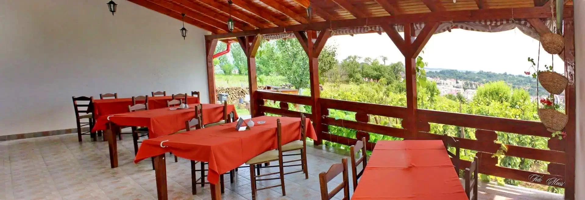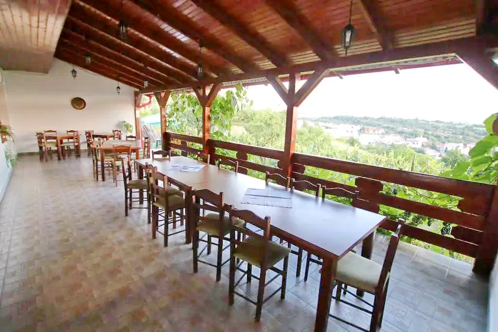 - Terasa restaurantului oferă o priveliște frumoasă către vie și pădure, fiind locul ideal pentru o masă liniștită.