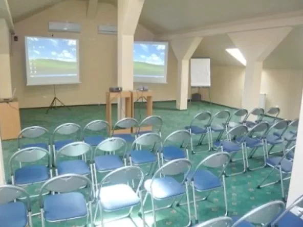 Sala de conferinţe ideal pentru programe de business, team building, precum si pentru diferite evenimente are o suprafaţă de 120 mp. Dotările (videoproiector, ecran de proiecţie, TV plasma,mobilier specific, salon de coffe break) de care dispune vor face ca întâlnirea dumneavoastră să fie una de succes.