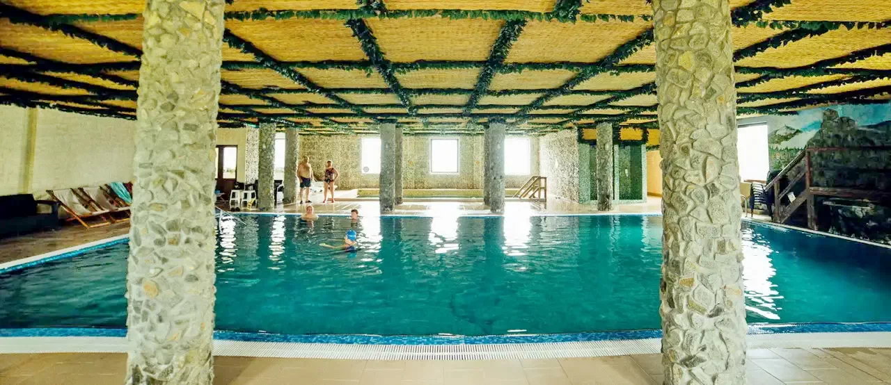 - Centru Wellness: piscină cu apă dulce (7 × 14 m), piscină cu apă sărată (8 × 4 m), saună finlandeză și infraroșu, baie de aburi, camere de terapie cu lumină și servicii de masaj.