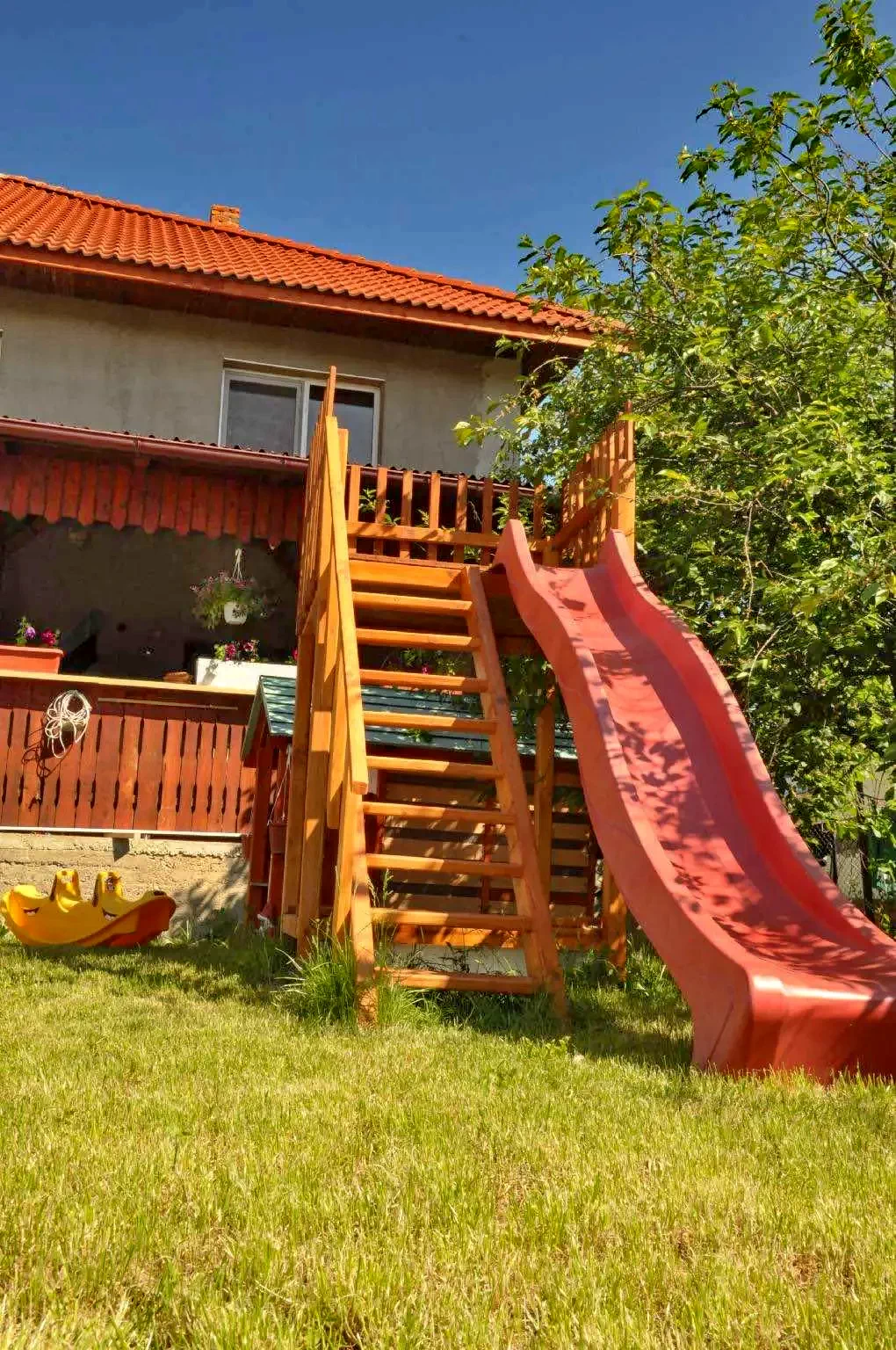 - Pensiunea își așteaptă oaspeții cu o curte amenajată, loc de joacă și parcare
