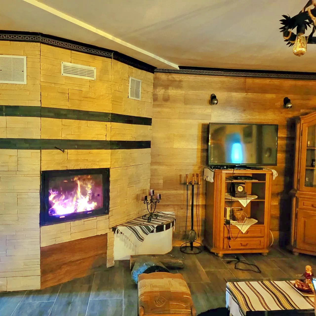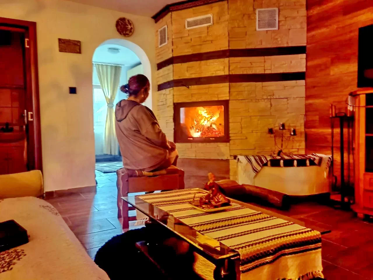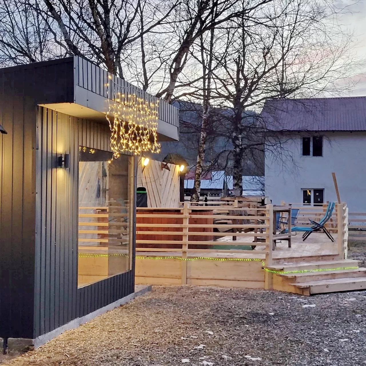 La parter se află bucătăria și nappali-ul, unde oaspeții se pot relaxa în fața șemineului cu un pahar de vin fiert.