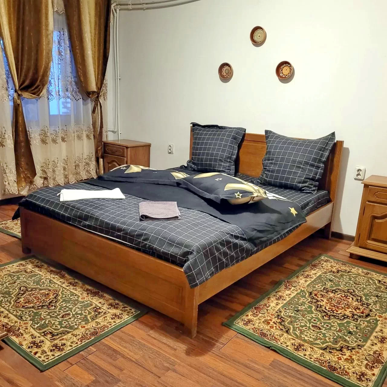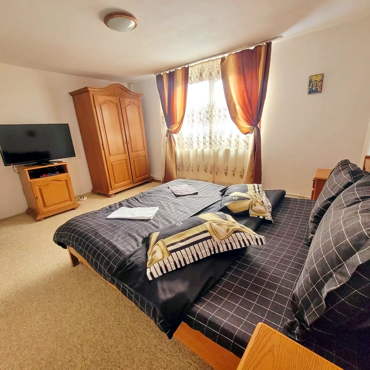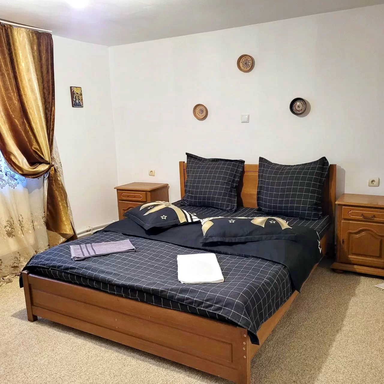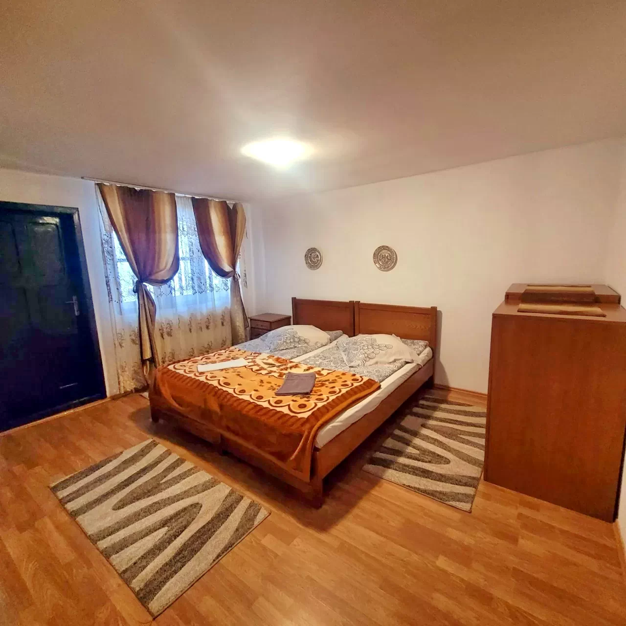 1 cameră cu 2 paturi simple și 1 pat dublu