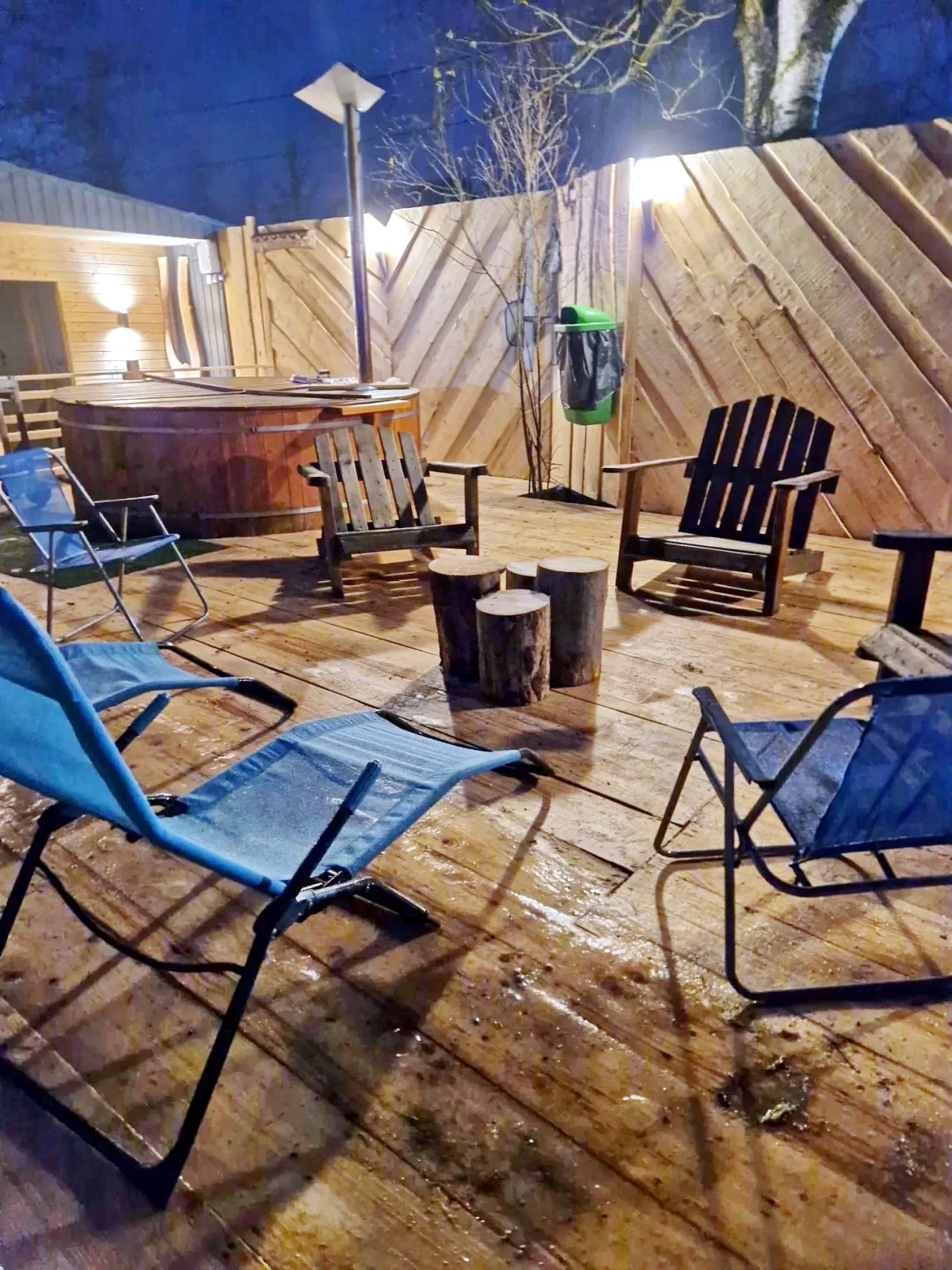 Zone de relaxare cu șemineu și mobilier de grădină