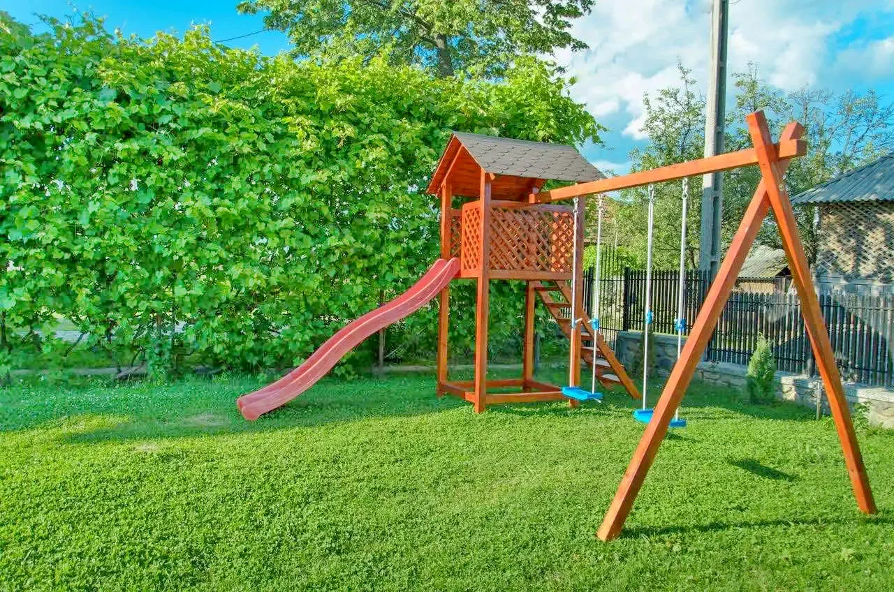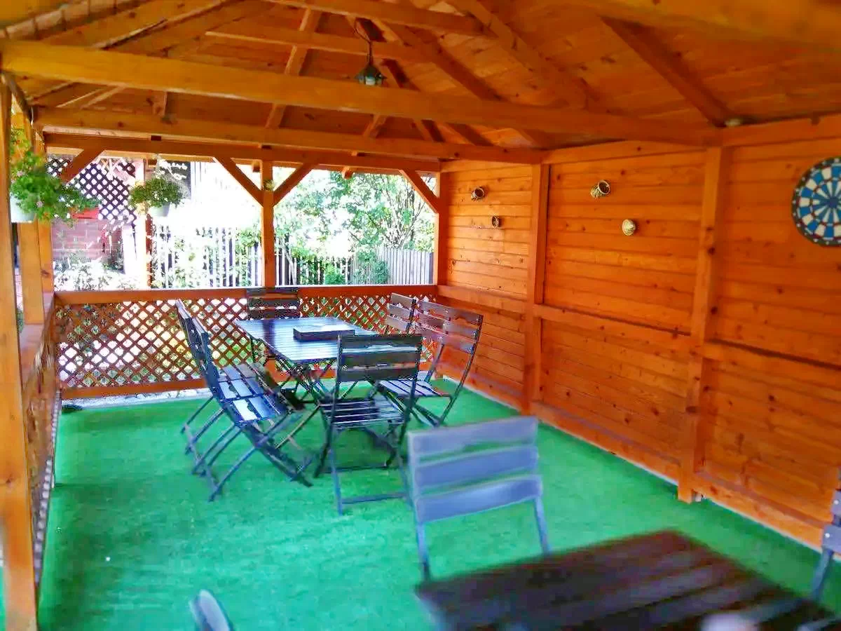 - Dispune de o zona verde spatioasa, gradina, curte, terasa, filagorie, cuptor, gratar, ceaun, loc de joaca pentru copii, si parcare inchisa.